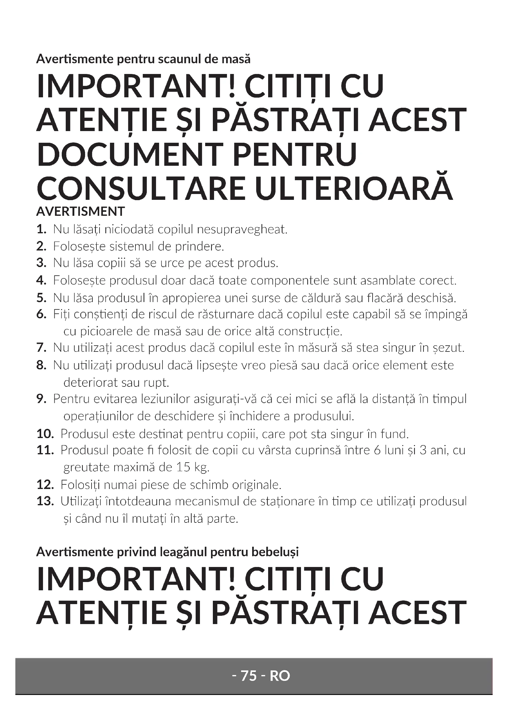 7. Nu ulizați acest produs dacă copilul este în măsură să stea singur în șezut.