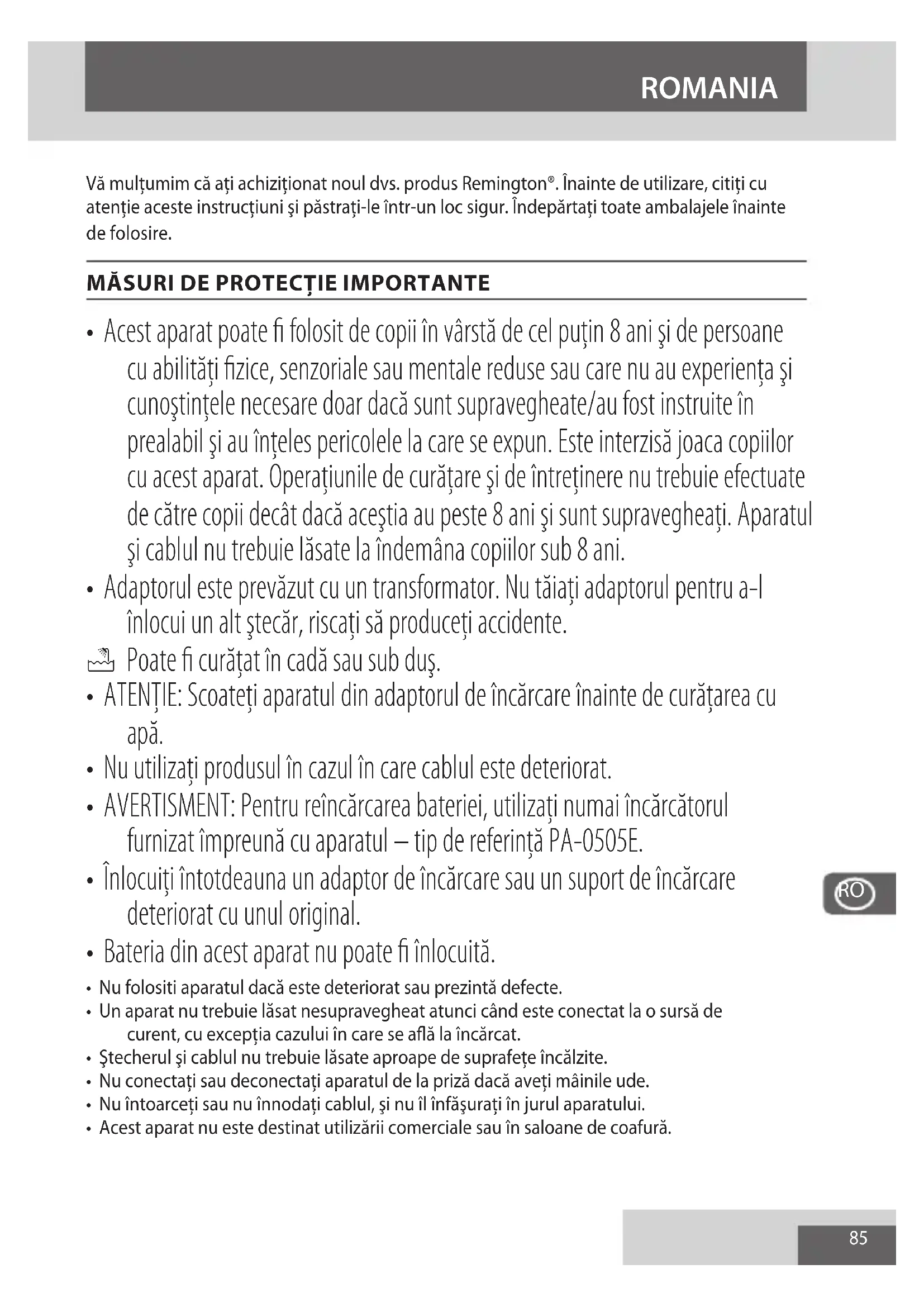 F4005 - Bărbierit REMINGTON - Manual de utilizare gratuit