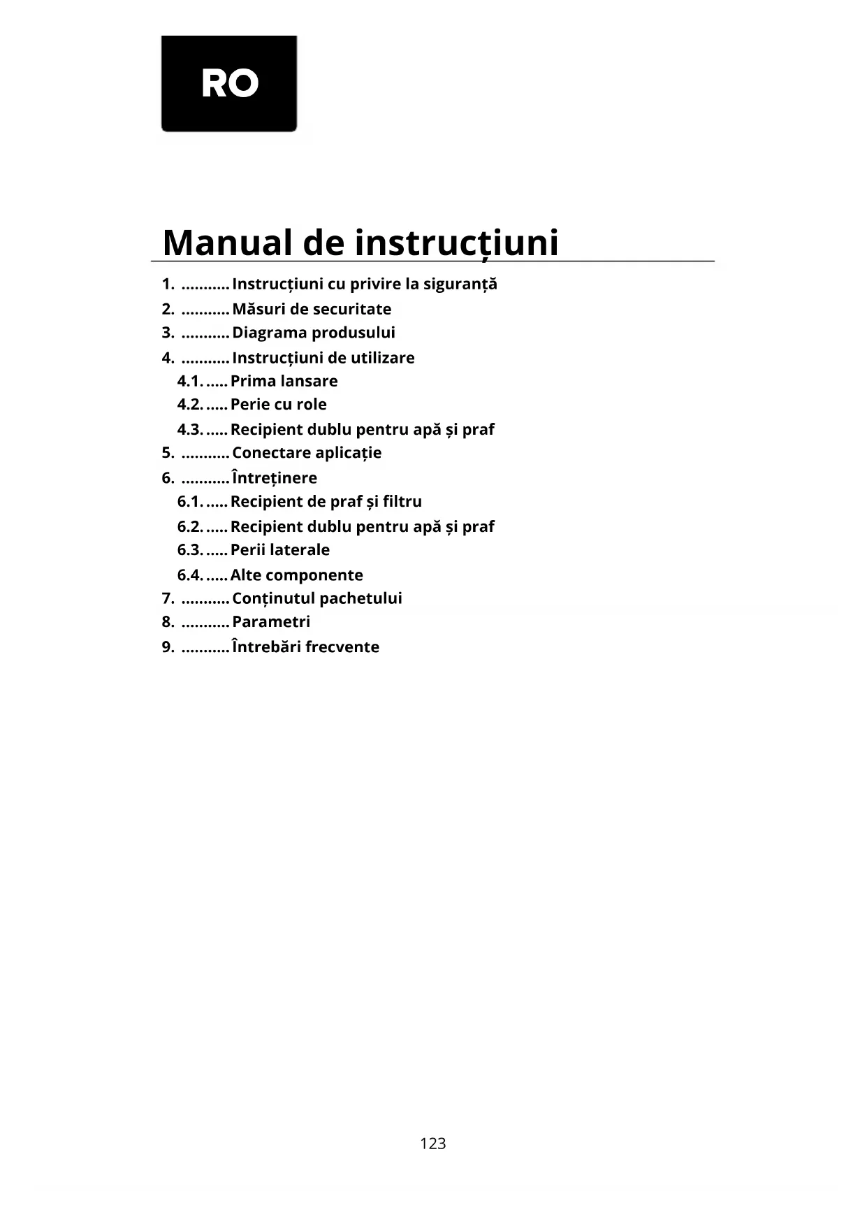 4.1. ..... Prima lansare 4.2. ..... Perie cu role 4.3. ..... Recipient dublu pentru apă și praf