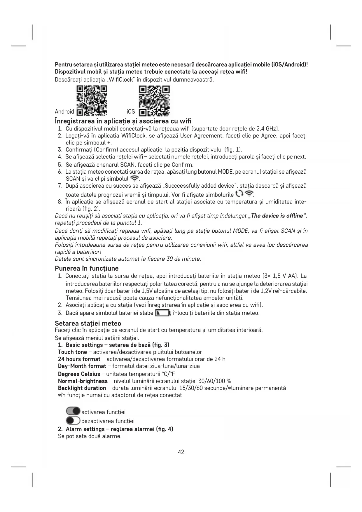 2. Alarm settings – reglarea alarmei (g. 4)