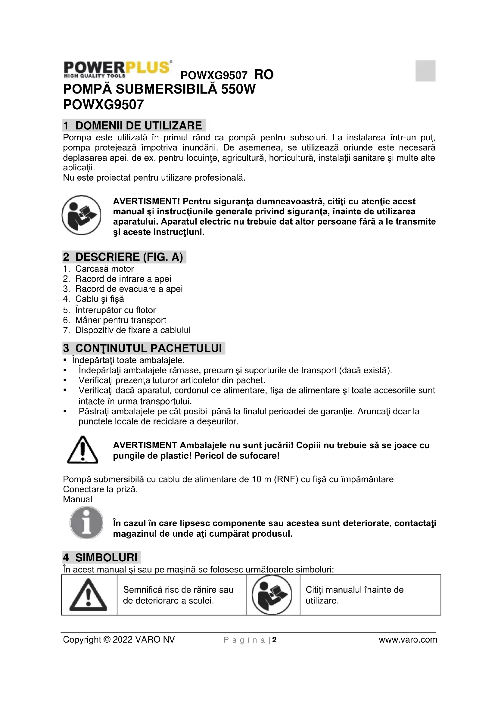 Citiţi manualul înainte de utilizare.POWXG9507 RO Copyright © 2022 VARO NV P a g i n a | 3 www.varo.com