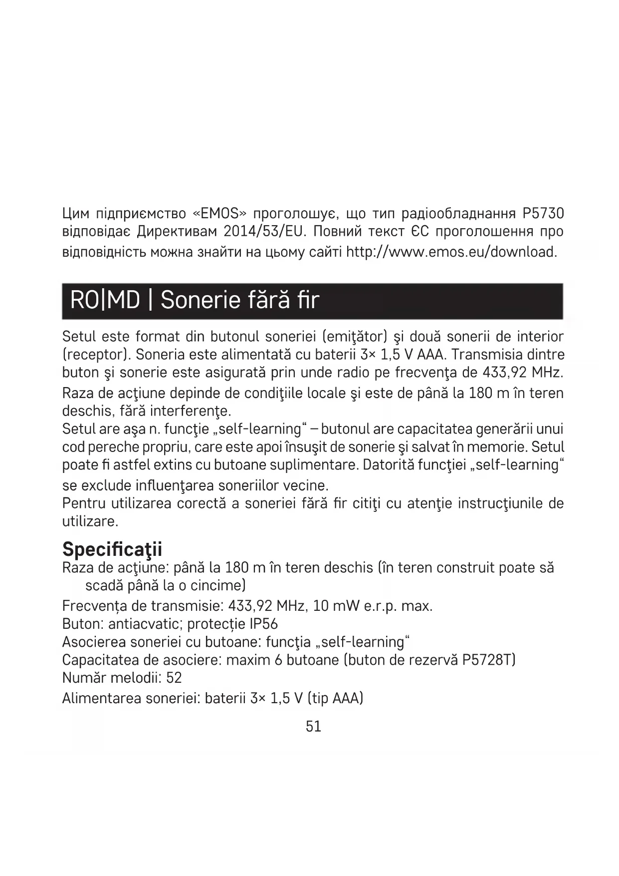 P5730 - Sonerii de ușă Emos - Manual de utilizare gratuit