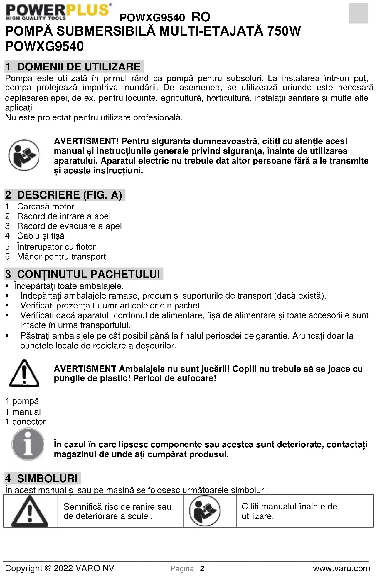 Citiți manualul înainte de utilizare.POWXG9540 RO Copyright © 2022 VARO NV Pagina | 3 www.varo.com