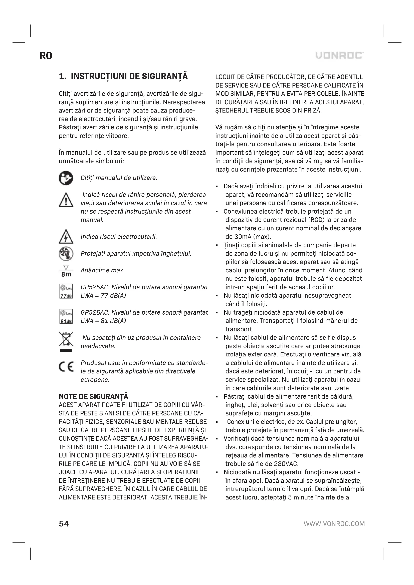 MANUAL DE UTILIZARE GP525AC Vonroc
