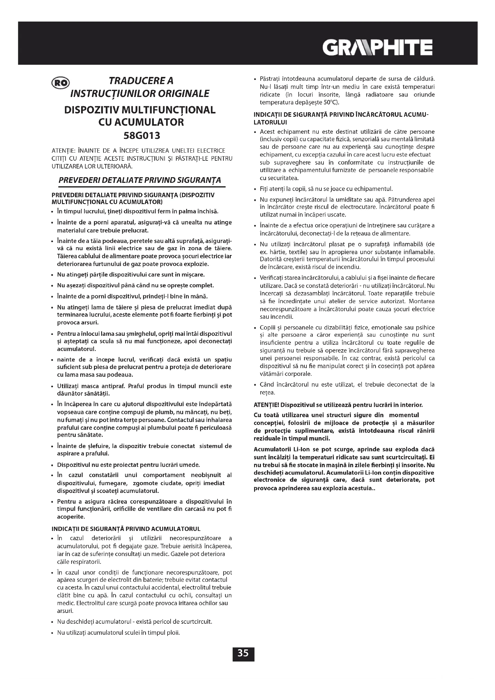 MANUAL DE UTILIZARE 58G013 Graphite