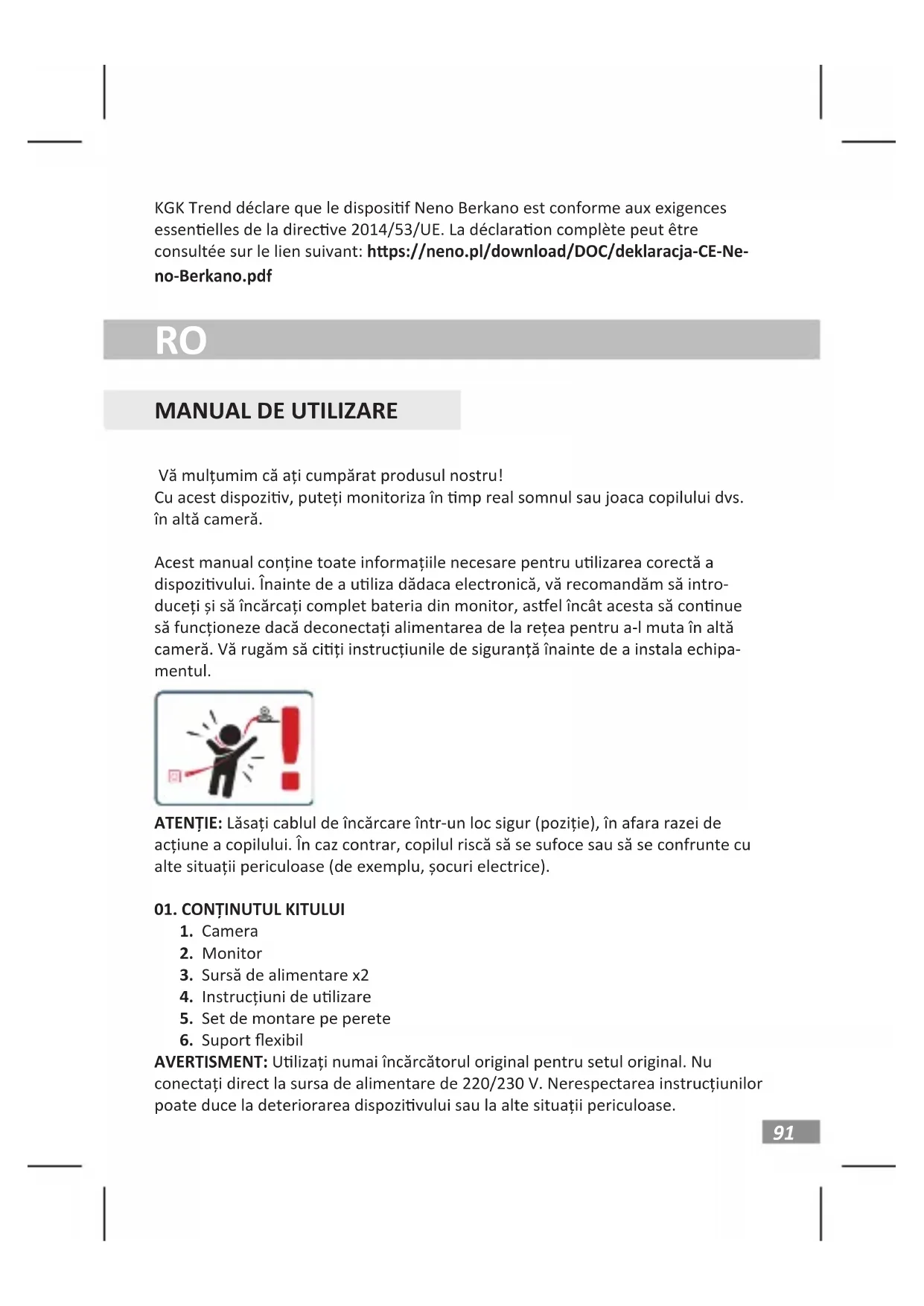 ulizat în condiții de siguranță, cu condiția ca acesta să e folosit conform descrierii din manualul de ulizare. Declarațiile complete de conformitate pot descărcate de la: www.neno.pl. Ciți întotdeauna cu atenție instrucțiu- nile din acest manual înainte de a uliza dispozivul.