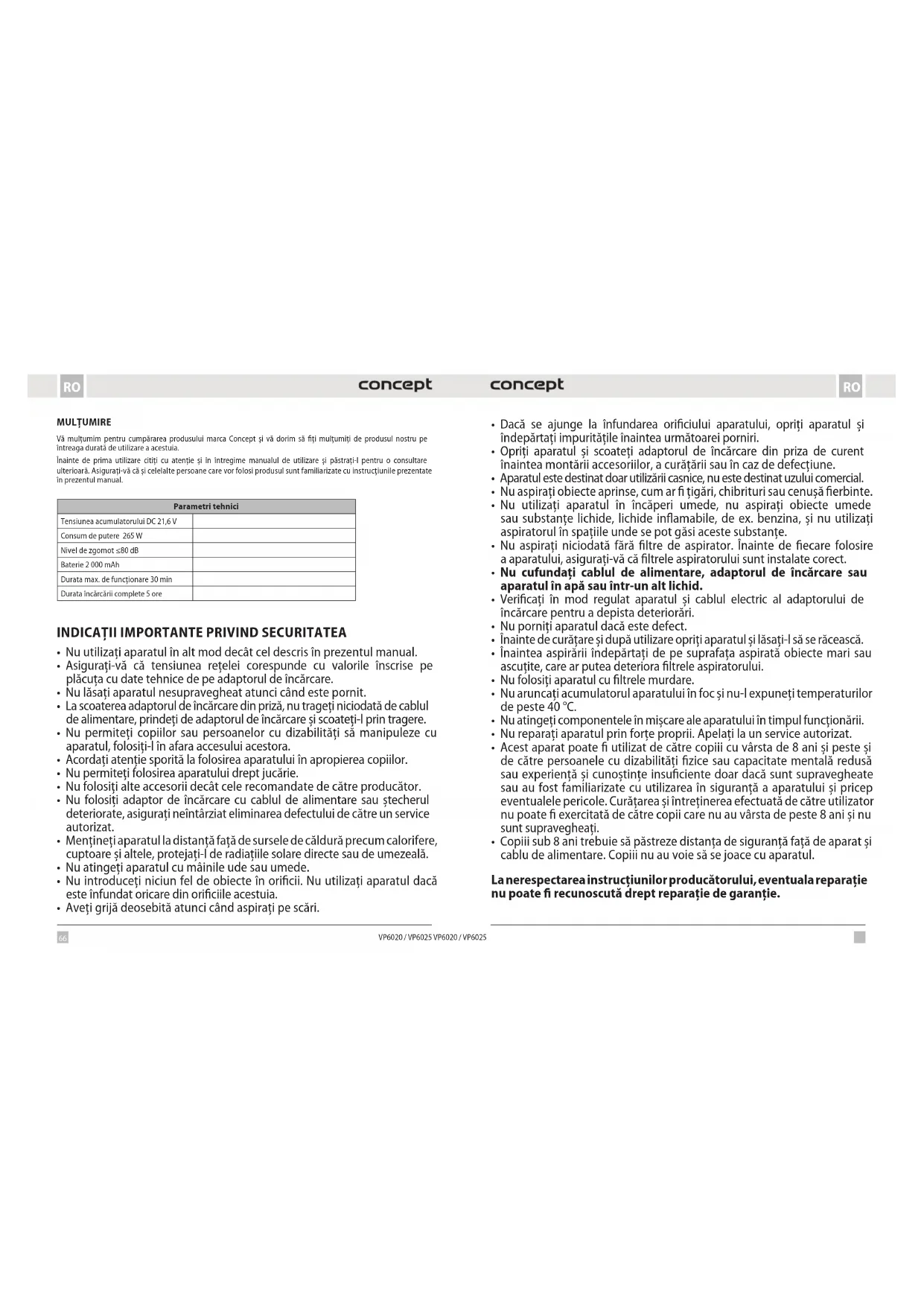 MANUAL DE UTILIZARE Iconic VP6025 Concept