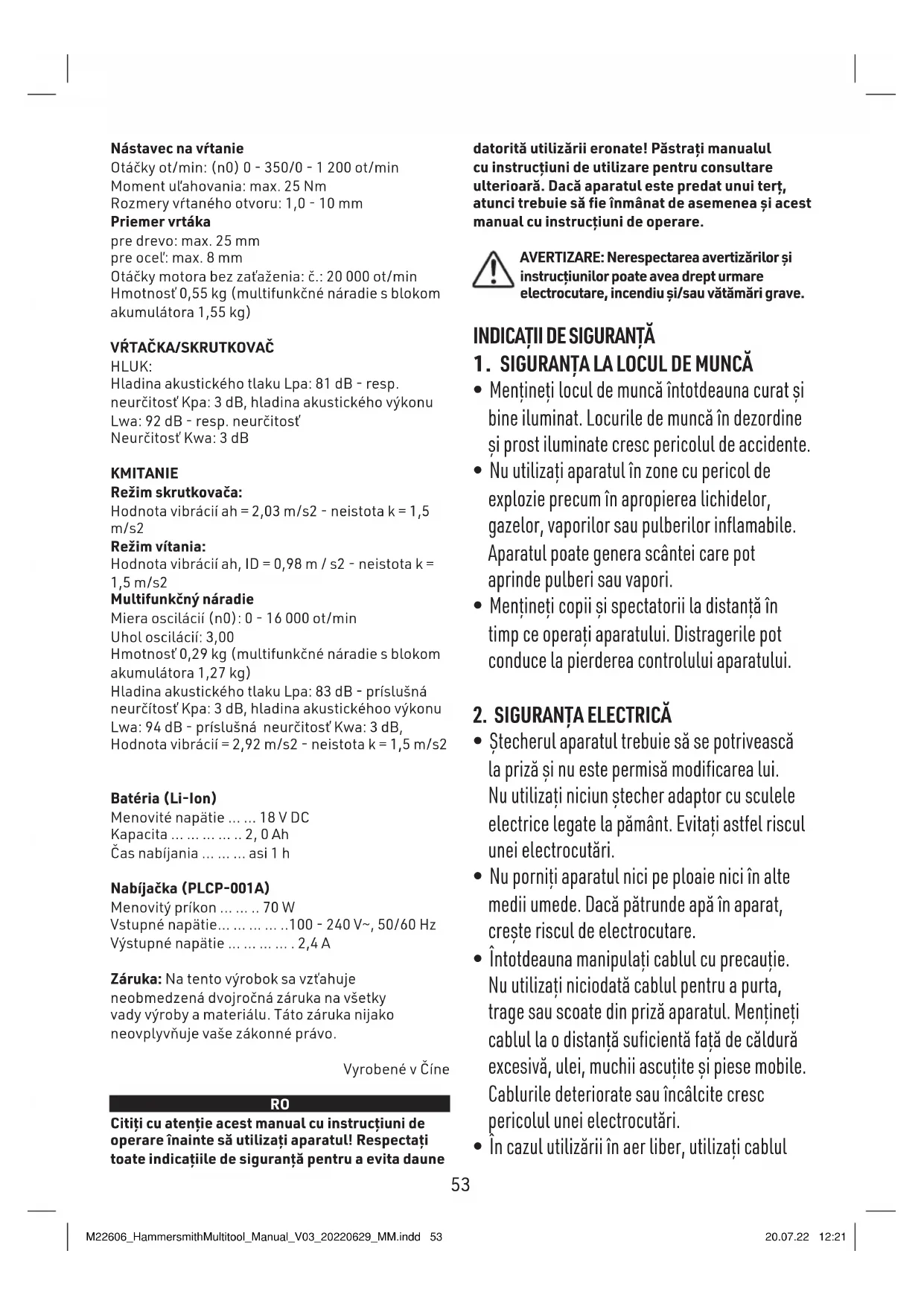 - Este permisă utilizarea aparatului de copii care au împlinit vârsta 8 ani sau au o vârstă mai mare şi de persoane ce au capacităţi corporale, senzoriale sau mentale limitate sau o lipsă de experienţă şi cunoştinţe totuşi numai atunci când sunt supravegheaţi sau au primit un instructaj corespunzător, pentru a opera aparatul în siguranţă şi conform reglementărilor şi au fost instruiţi suficient asupra tuturor pericolelor care ar putea surveni. M22606_HammersmithMultitool_Manual_V03_20220629_MM.indd 54M22606_HammersmithMultitool_Manual_V03_20220629_MM.indd 54 20.07.22 12:2120.07.22 12:2154