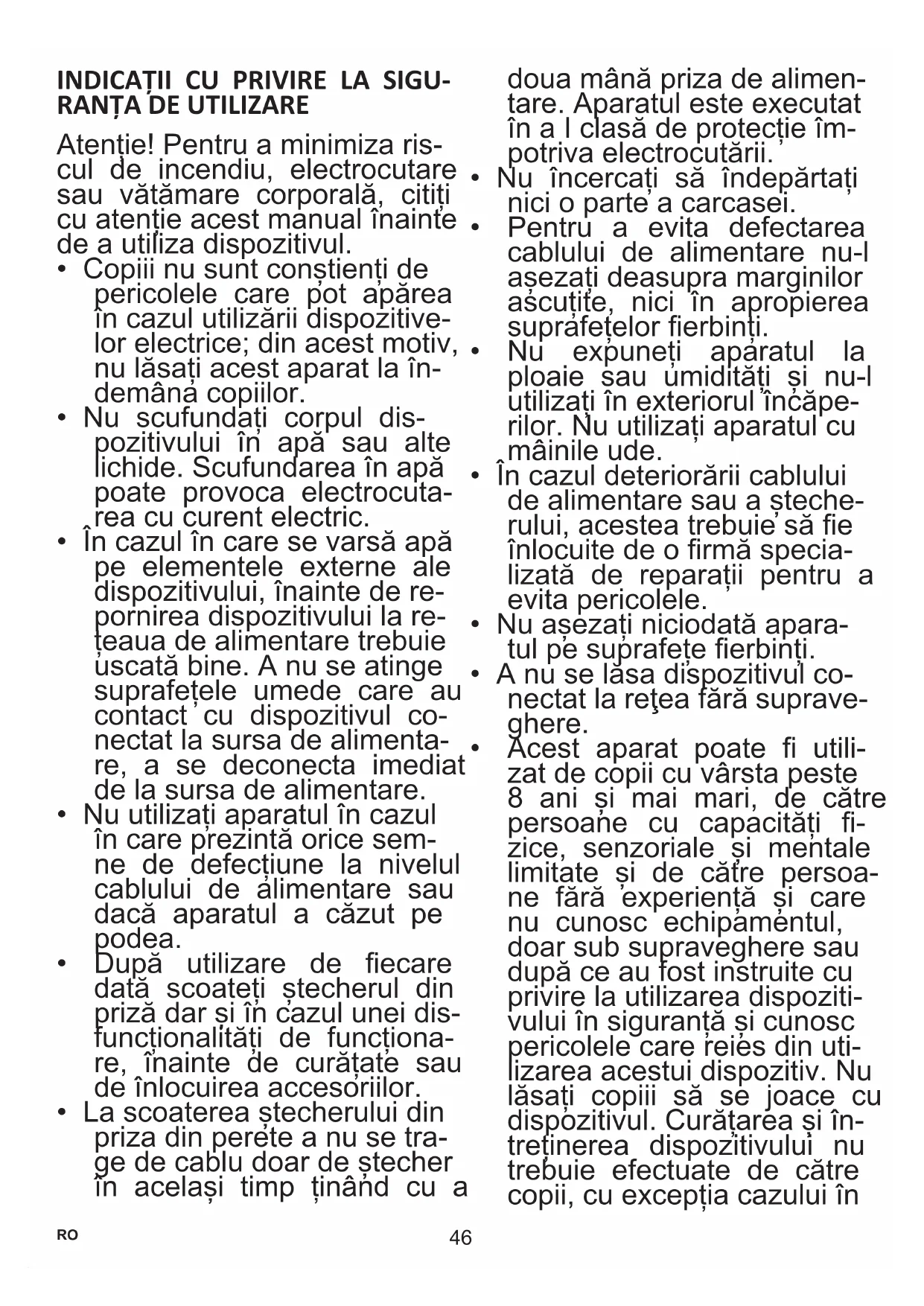 Atenție! Pentru a minimiza ris- cul de incendiu, electrocutare sau vătămare corporală, citiți cu atenție acest manual înainte de a utiliza dispozitivul.