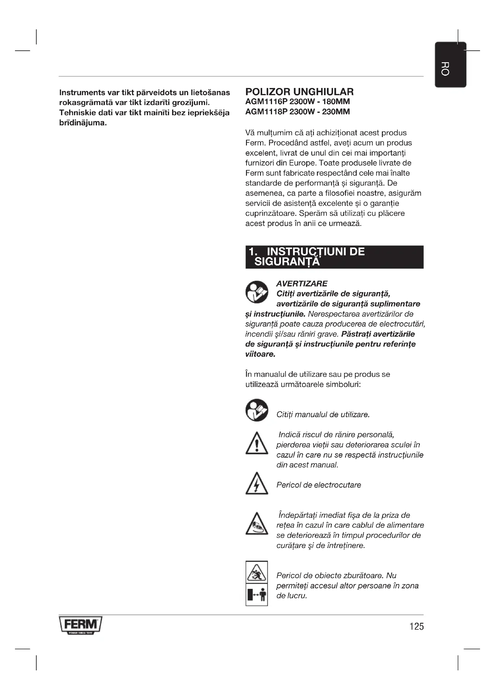 MANUAL DE UTILIZARE AGM1118P Ferm