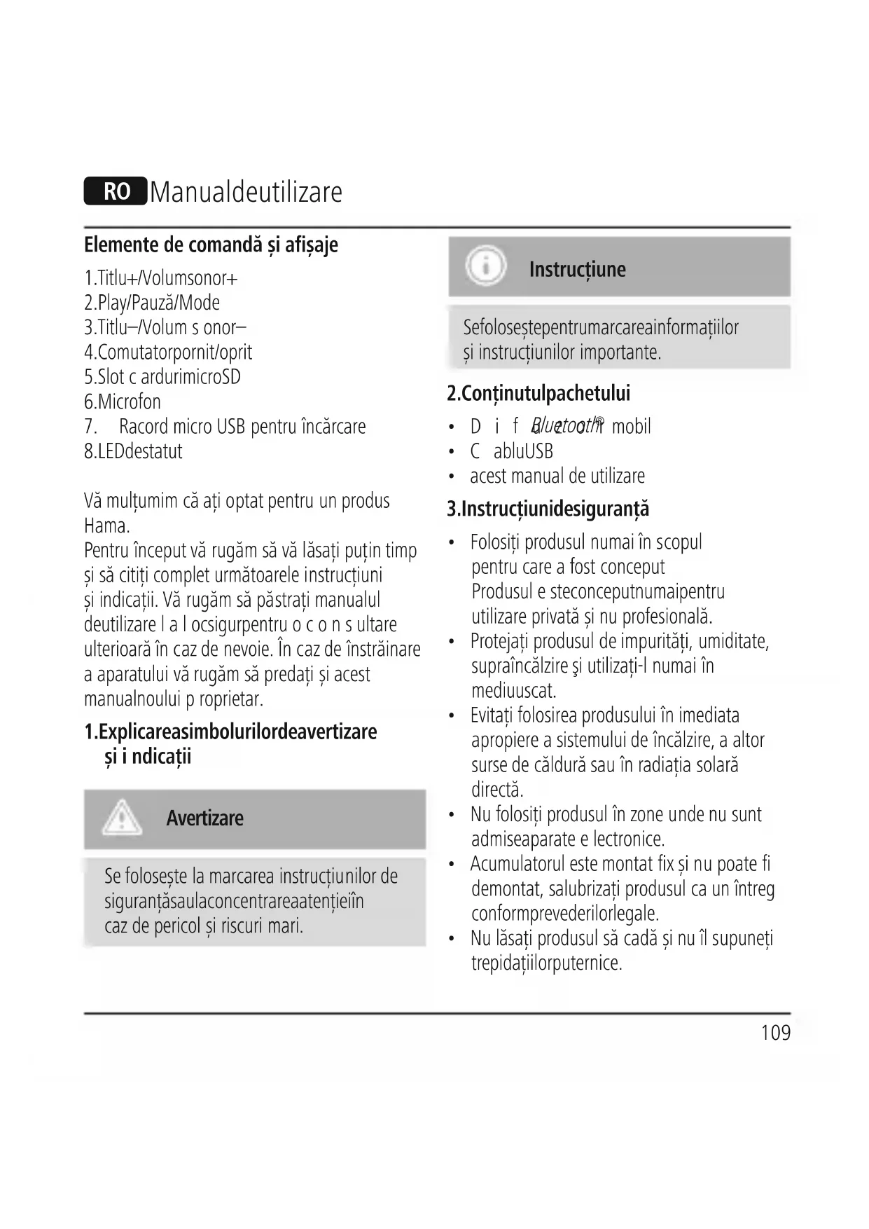 Vă mulţumim că aţioptat pentru un produs Hama. Pentru început vă rugămsăvălăsațipuțin timp șisăcitițicompleturmătoareleinstrucțiuni șiindicații. Vă rugămsăpăstraţimanualul de utilizarelaloc sigur pentruoconsultare ulterioară încaz de nevoie. Încaz de înstrăinare aaparatului vă rugămsăpredați șiacest manual nouluiproprietar.