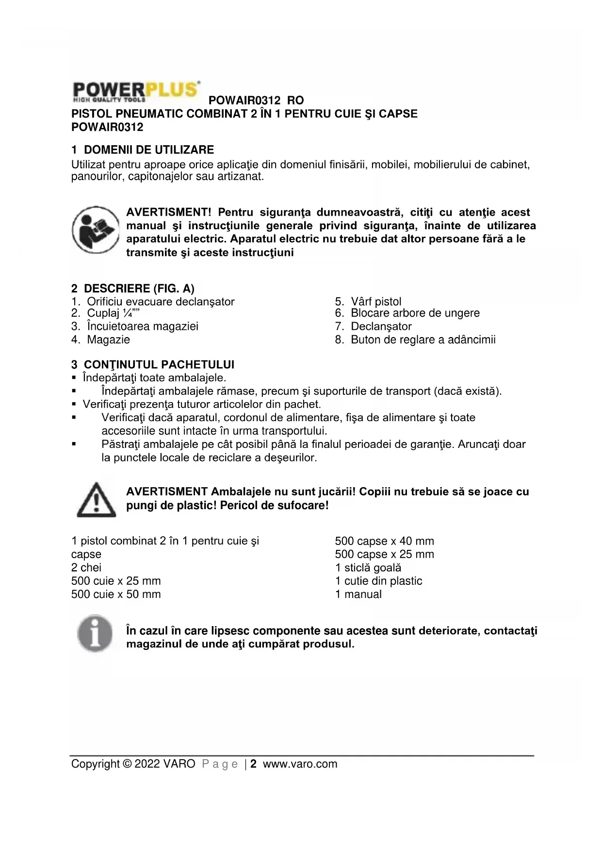 siguranţa”.POWAIR0312 RO Copyright © 2022 VARO P a g e | 7 www.varo.com