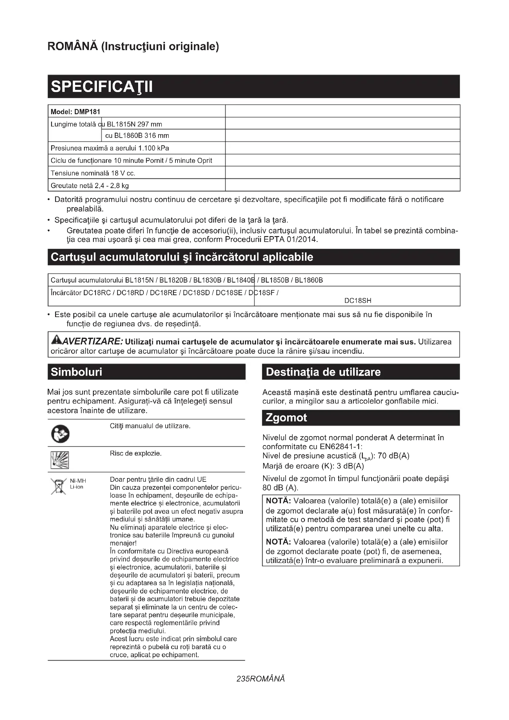 DMP181 - Neclasificat MAKITA - Manual de utilizare gratuit