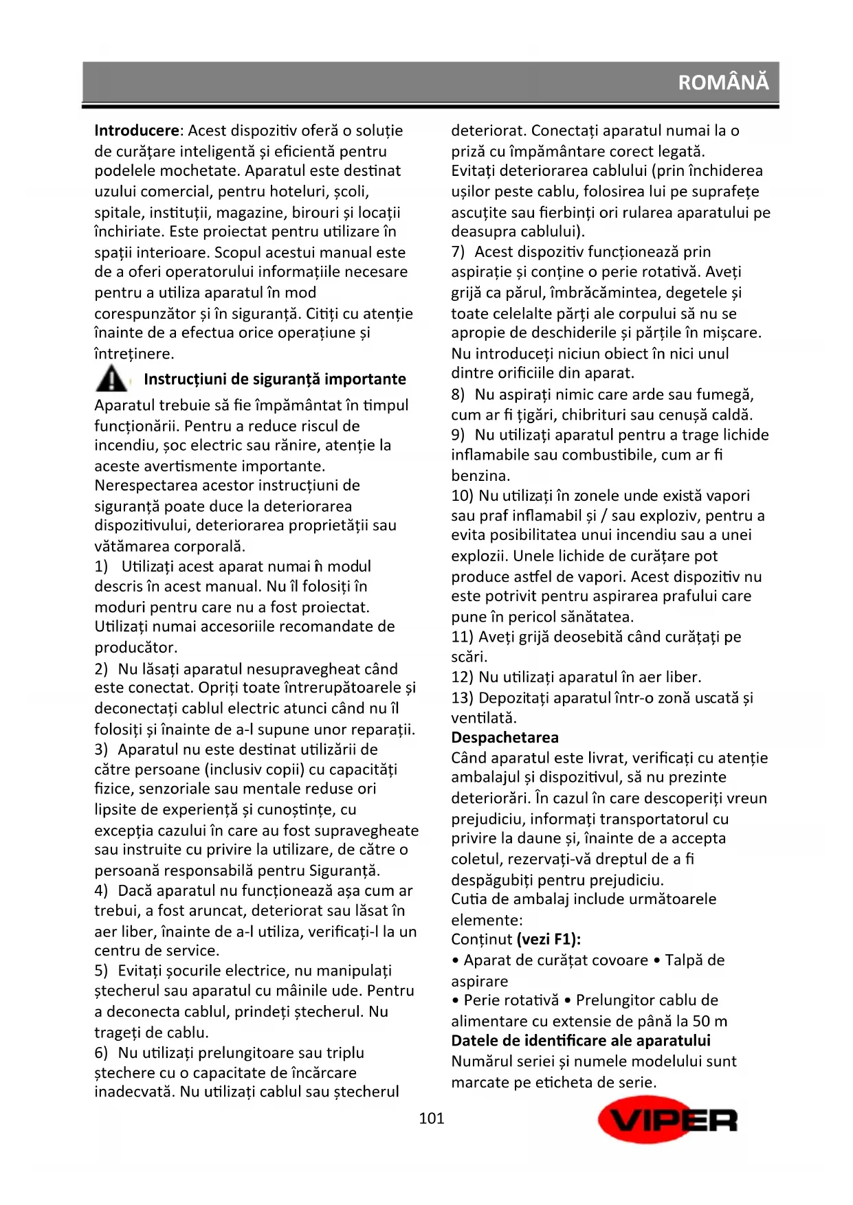 MANUAL DE UTILIZARE Viper CEX410 NILFISK