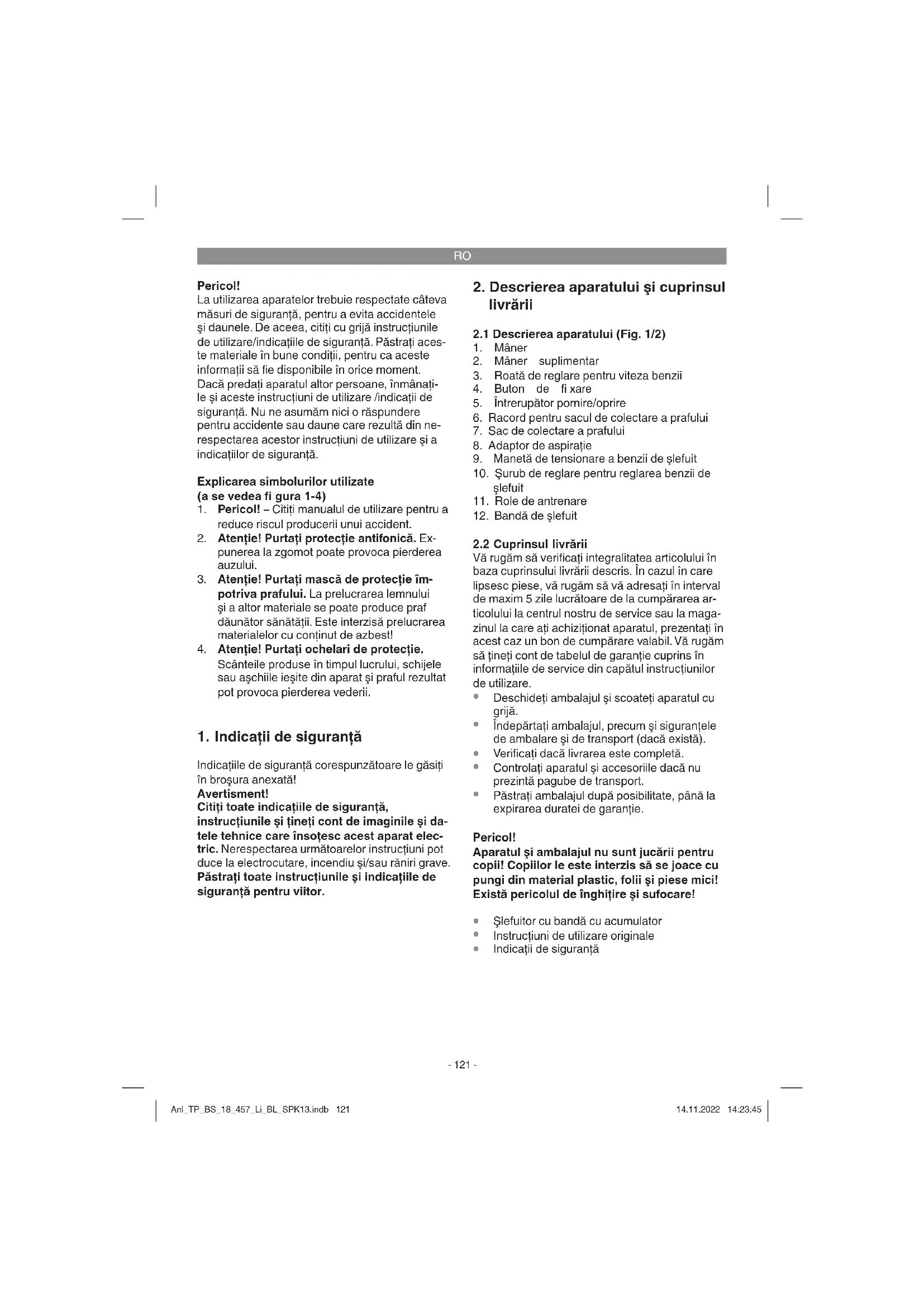 mână-braţ, în cazul utilizării timp mai înde- lungat a aparatului sau a utilizării şi întreţinerii sale necorespunzătoare. Anl_TP_BS_18_457_Li_BL_SPK13.indb 122Anl_TP_BS_18_457_Li_BL_SPK13.indb 122 14.11.2022 14:23:4514.11.2022 14:23:45RO