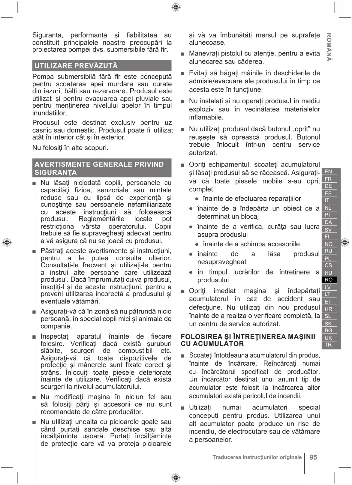 Traducerea instrucţiunilor originale