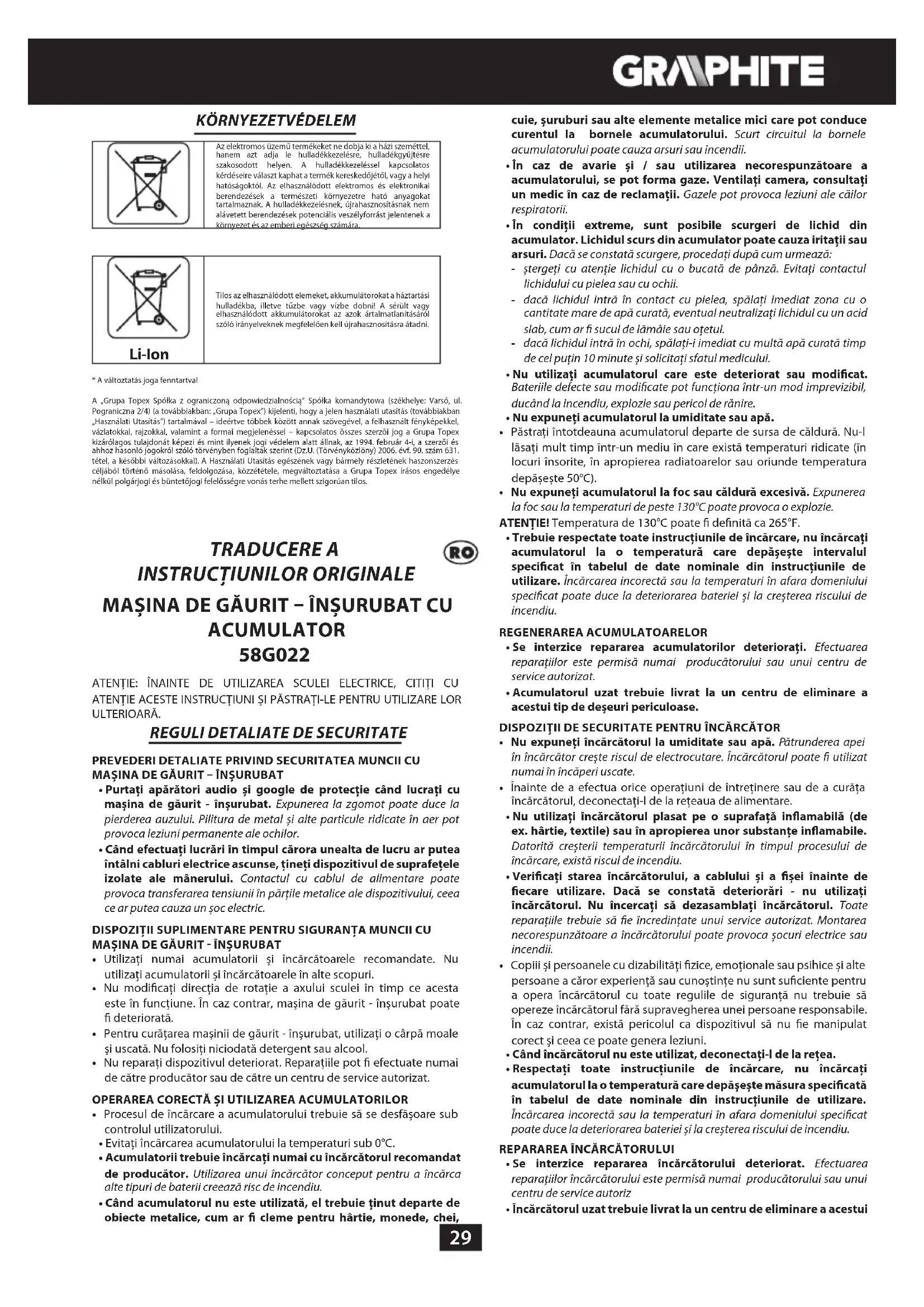 58G022 - Bormașină Graphite - Manual de utilizare gratuit