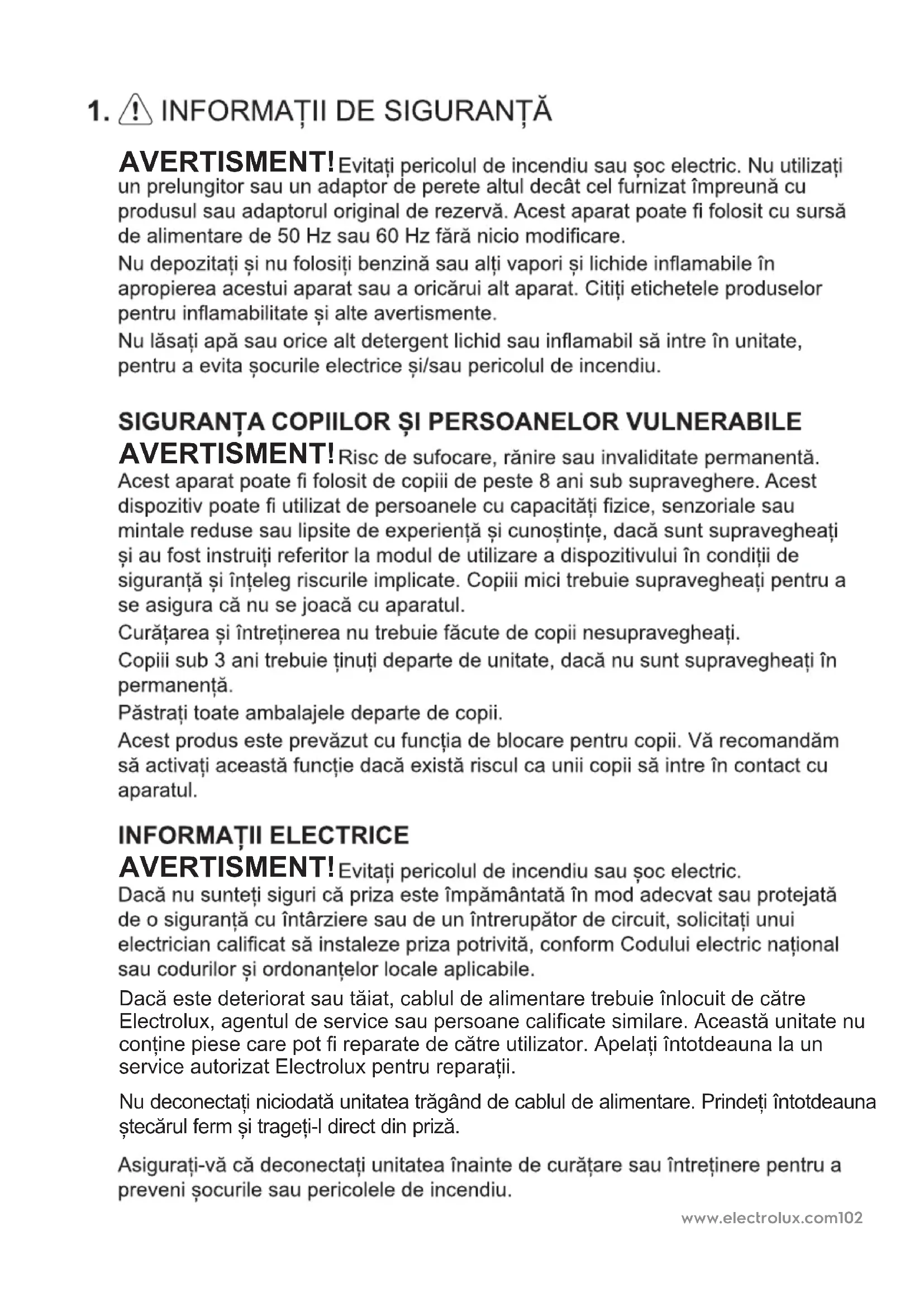 6www.electrolux.com106 Consultați paginile 107-109 pentru mai multe detalii despre descrierea imaginilor. Pentru a vă bucura liniștiți de aparat, înregistrați-l astăzi la www.electrolux.com. Fiți la curent cu servicii de viață mai bune, noticări de siguranță și cumpărați accesorii care se potrivesc cu aparatul dumneavoastră. Funcțiile pot adăugate sau actualizate cu noile versiuni ale aplicației.