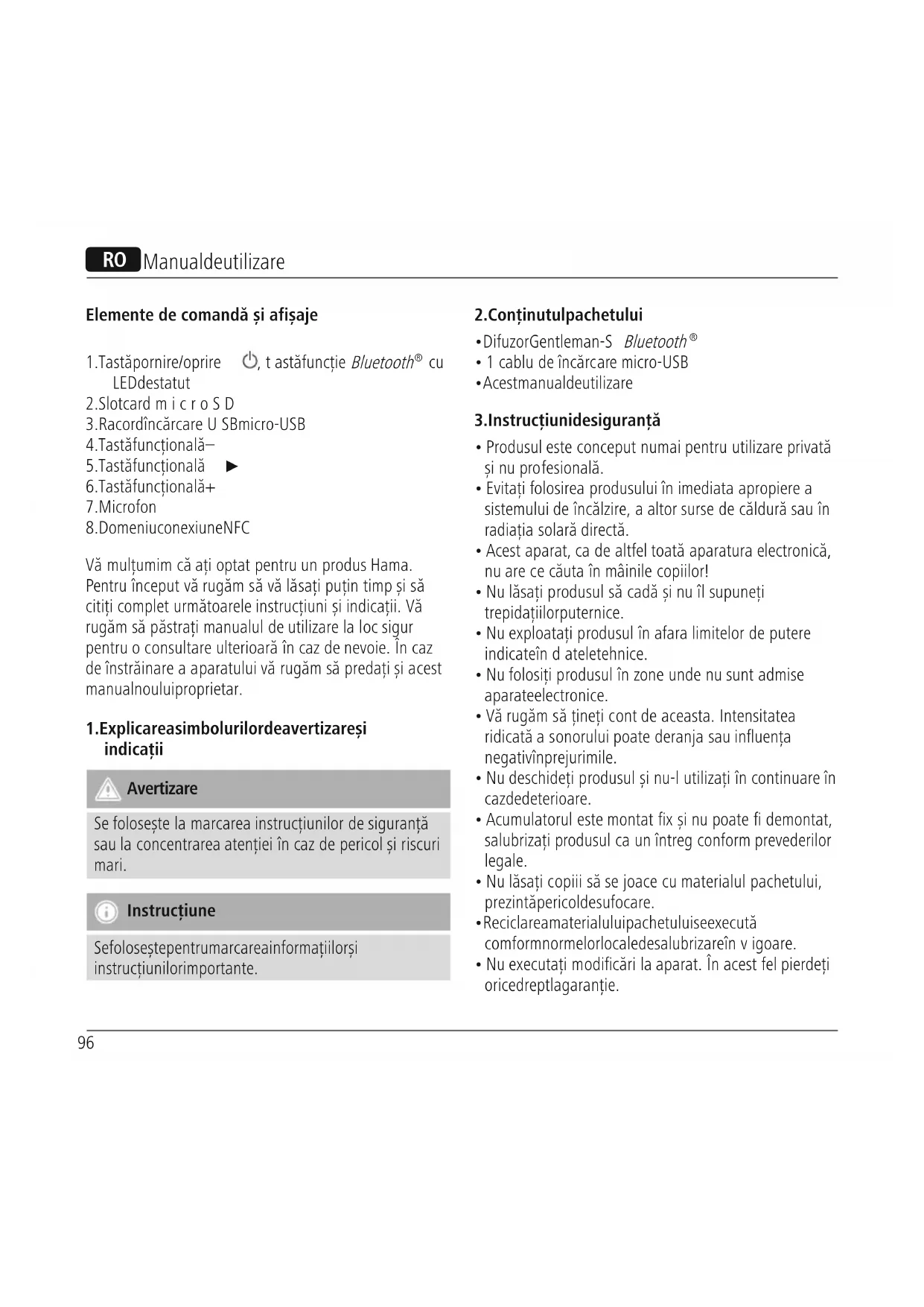 Vă mulţumim că aţioptat pentru un produs Hama. Pentru început vă rugămsăvălăsațipuțin timp șisă citițicomplet următoarele instrucțiuni șiindicații. Vă rugămsăpăstraţimanualul de utilizarelaloc sigur pentru oconsultareulterioară încaz de nevoie. Încaz de înstrăinareaaparatului vă rugămsăpredați șiacest manual noului proprietar.