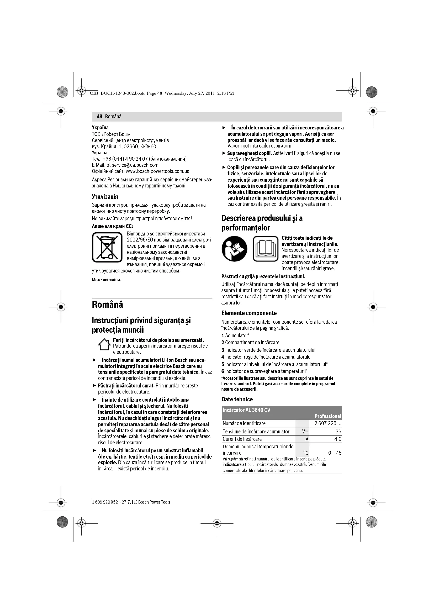 MANUAL DE UTILIZARE AL 3640 CV Professional BOSCH