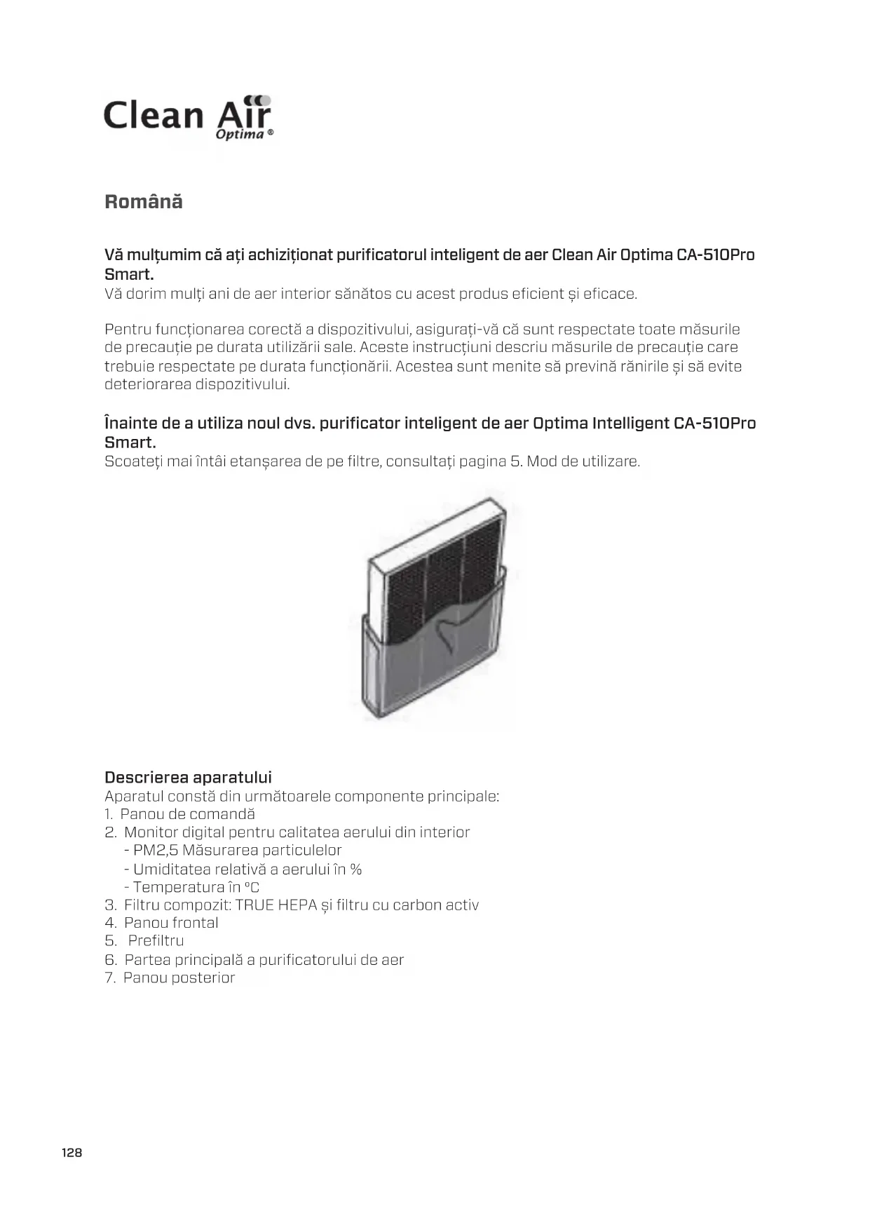 MANUAL DE UTILIZARE CA-510Pro Clean Air Optima