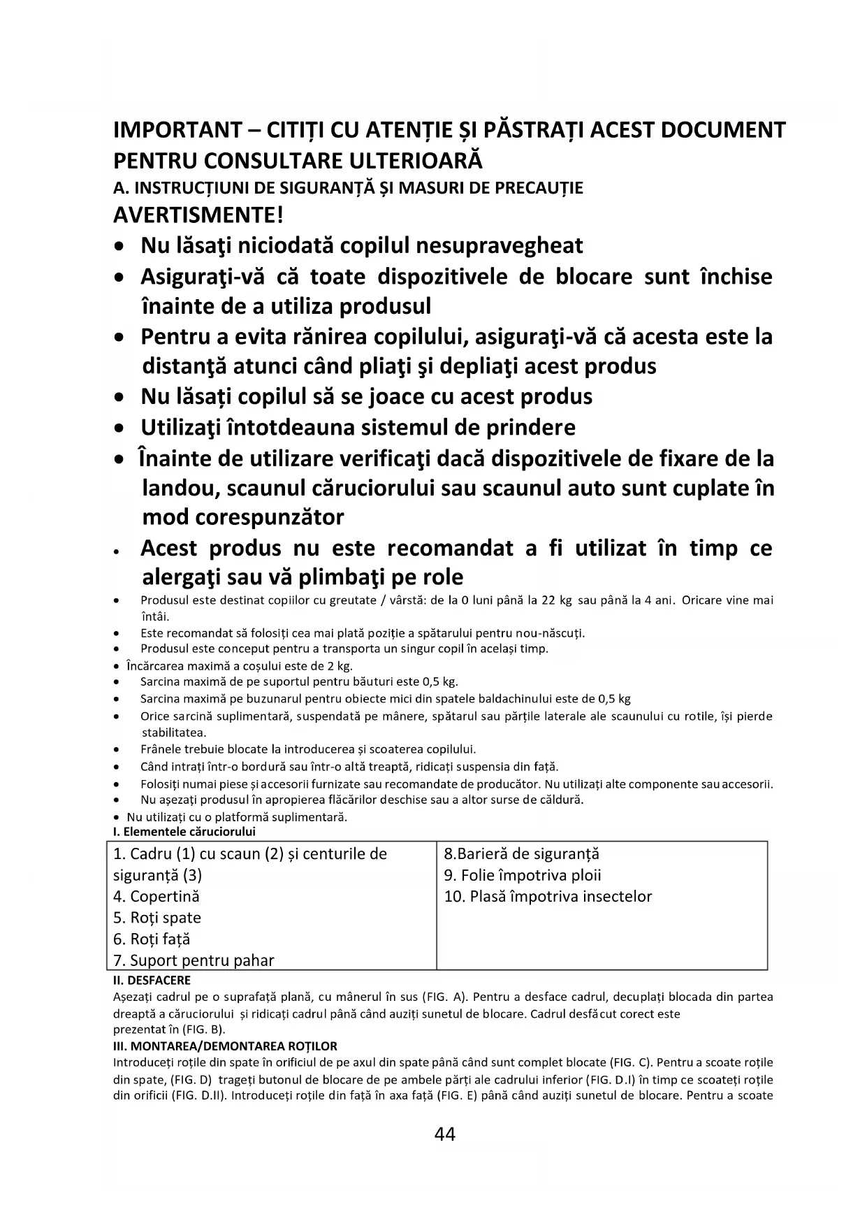 - Nuىutilizațiىcuىoىplatformăىsuplimentară. I. Elementele căruciorului