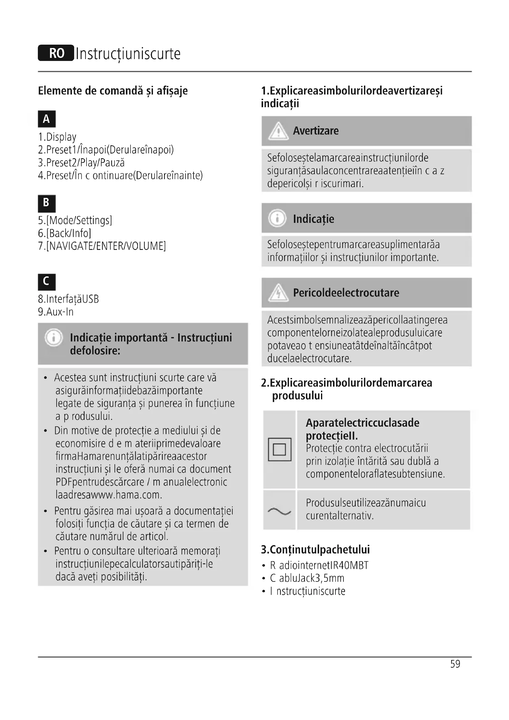 - Acestea sunt instrucțiuni scurte carevă asigură informații de bază importante legate de siguranța șipunerea înfuncțiune aprodusului.