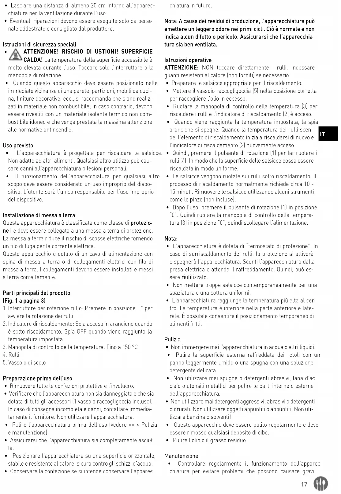 - Aparatul este proiectat pentru încălzirea cârnaţilor. Nu este potrivit pentru alte alimente. Orice altă utilizare poate duce la deteriorarea aparatului sau la vătămare corporală.