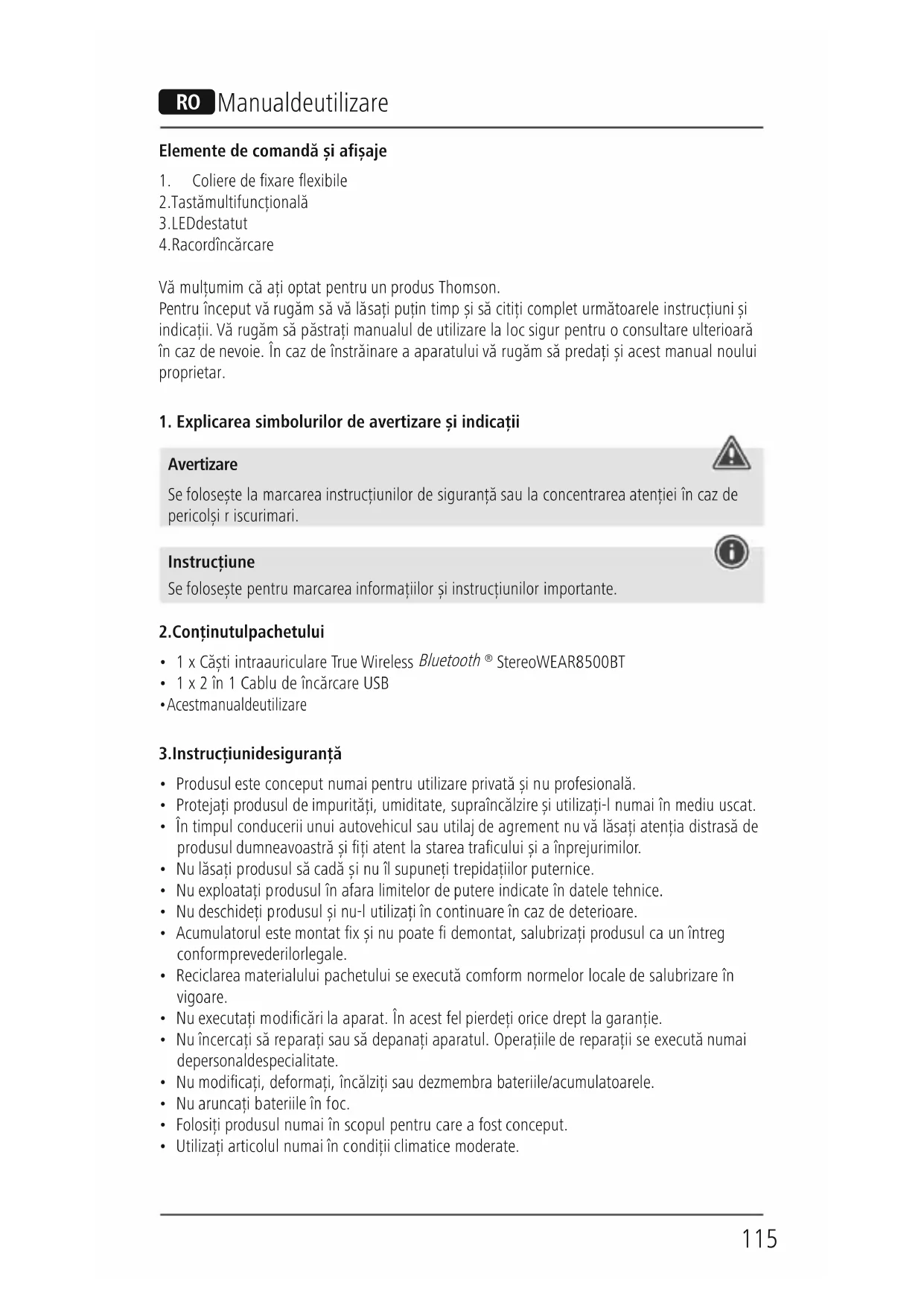 MANUAL DE UTILIZARE WEAR8500BT THOMSON