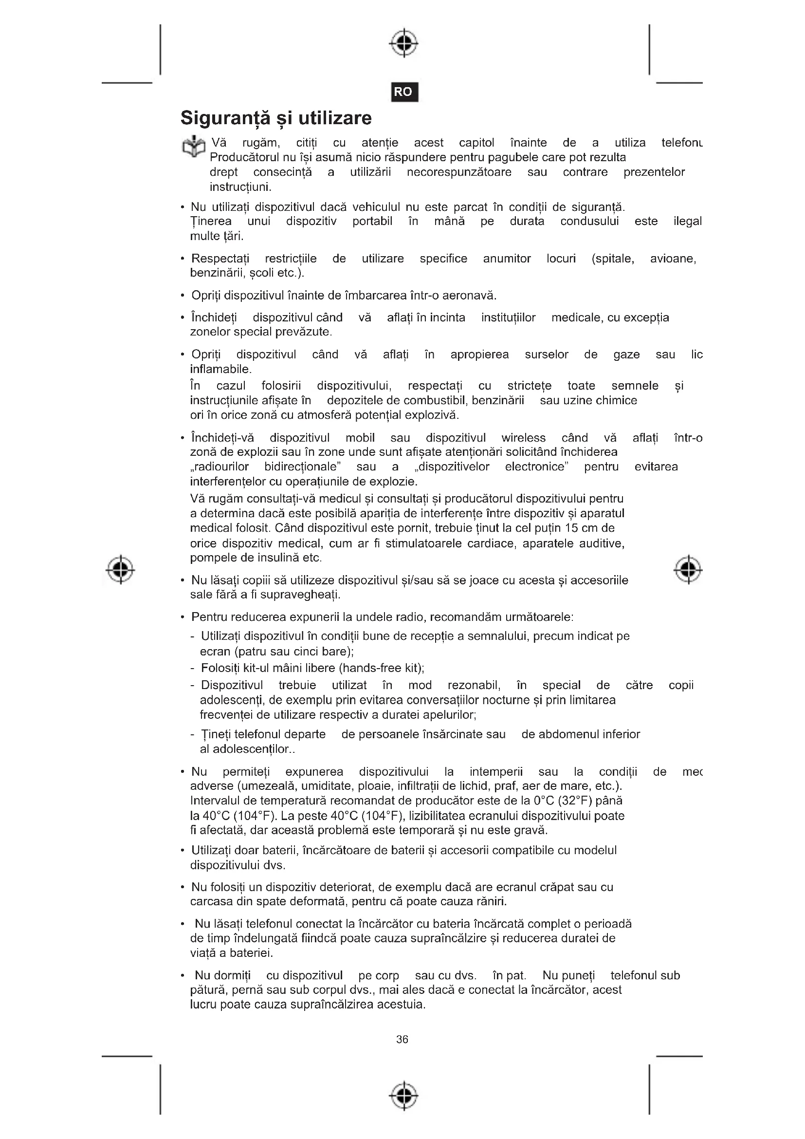 - Respectați restricțiile de utilizare specifice anumitor locuri (spitale, avioane, benzinării,școlietc.).