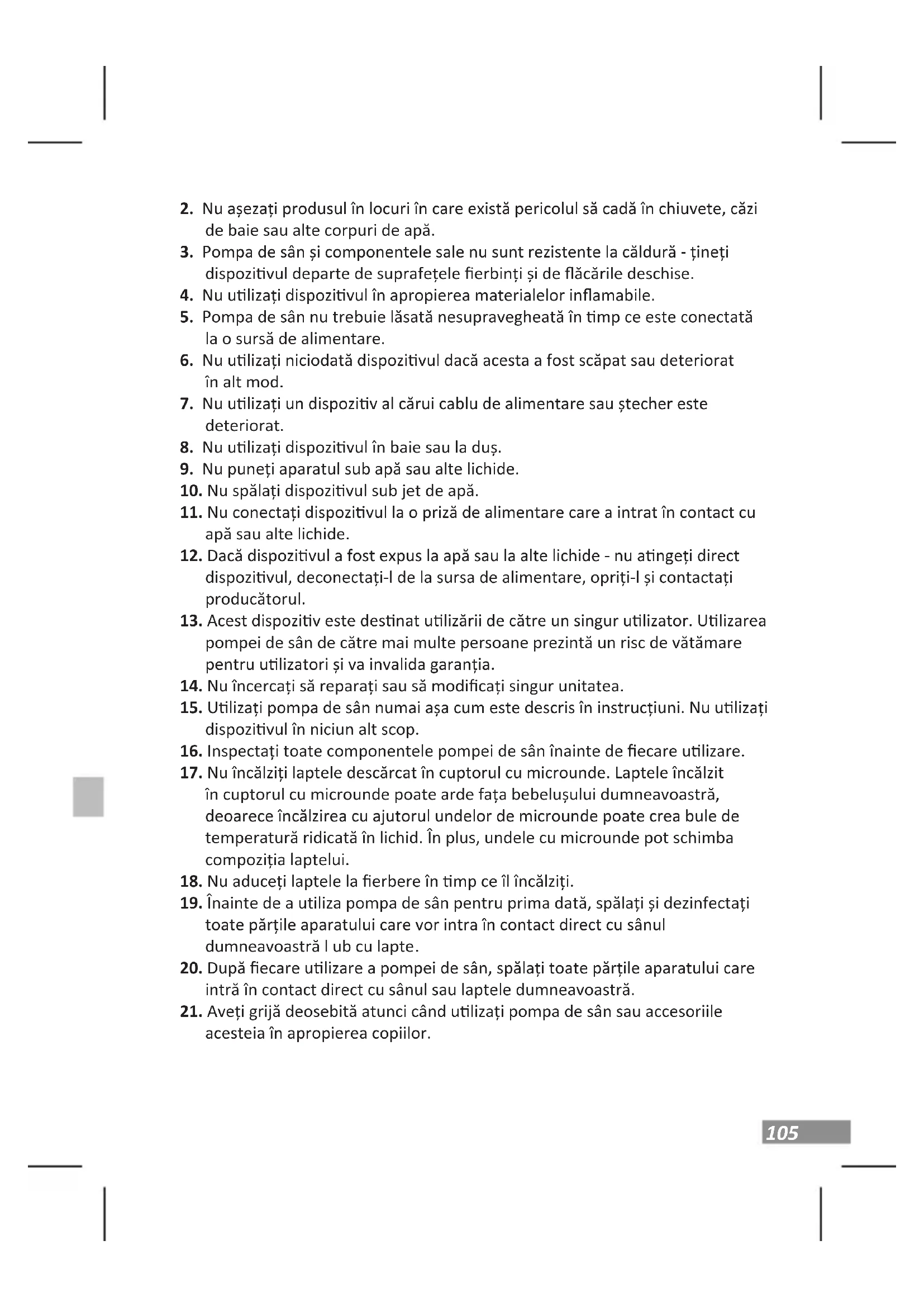 21. Aveți grijă deosebită atunci când ulizați pompa de sân sau accesoriile