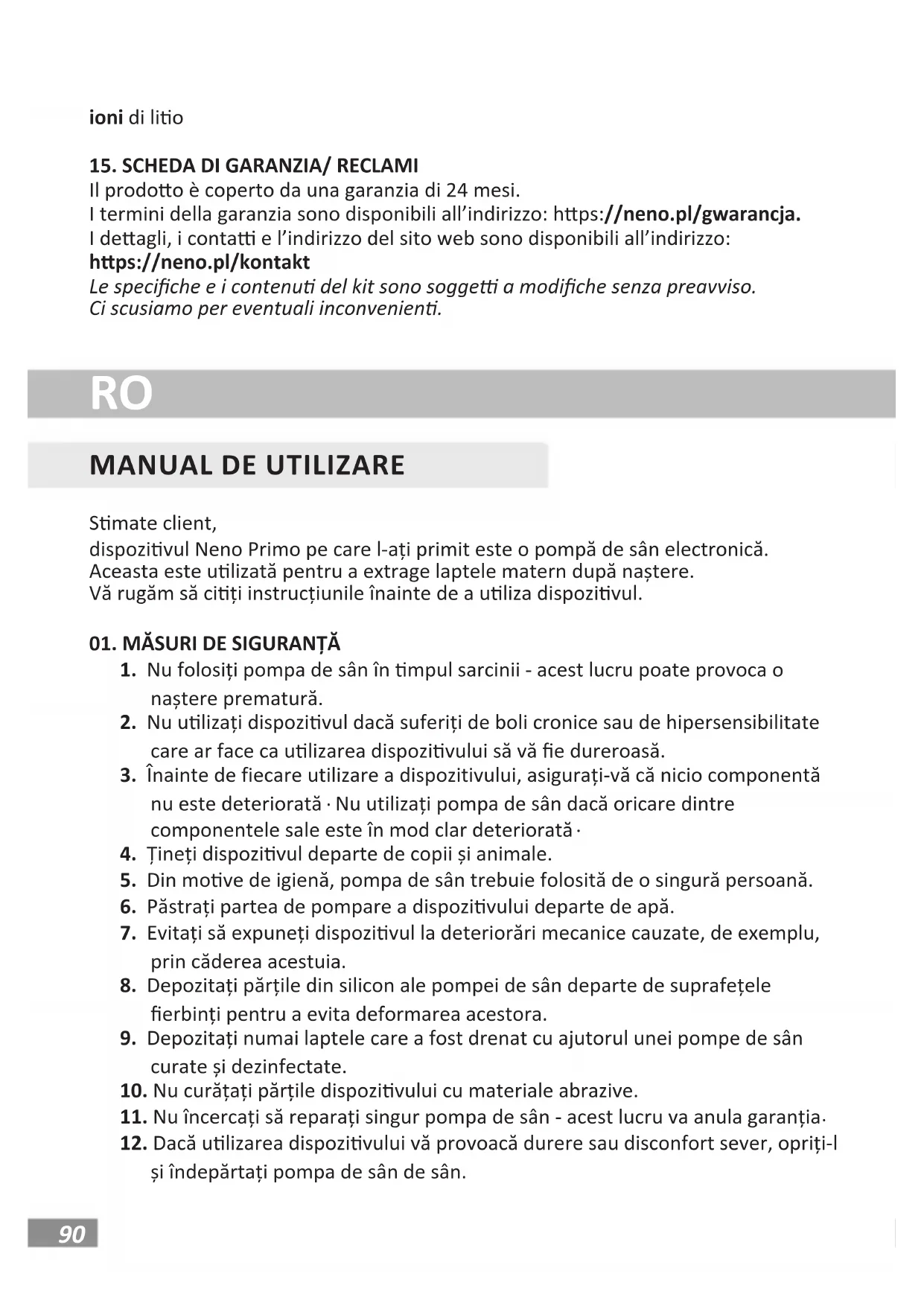 Primo - Pompa de sân Neno - Manual de utilizare gratuit