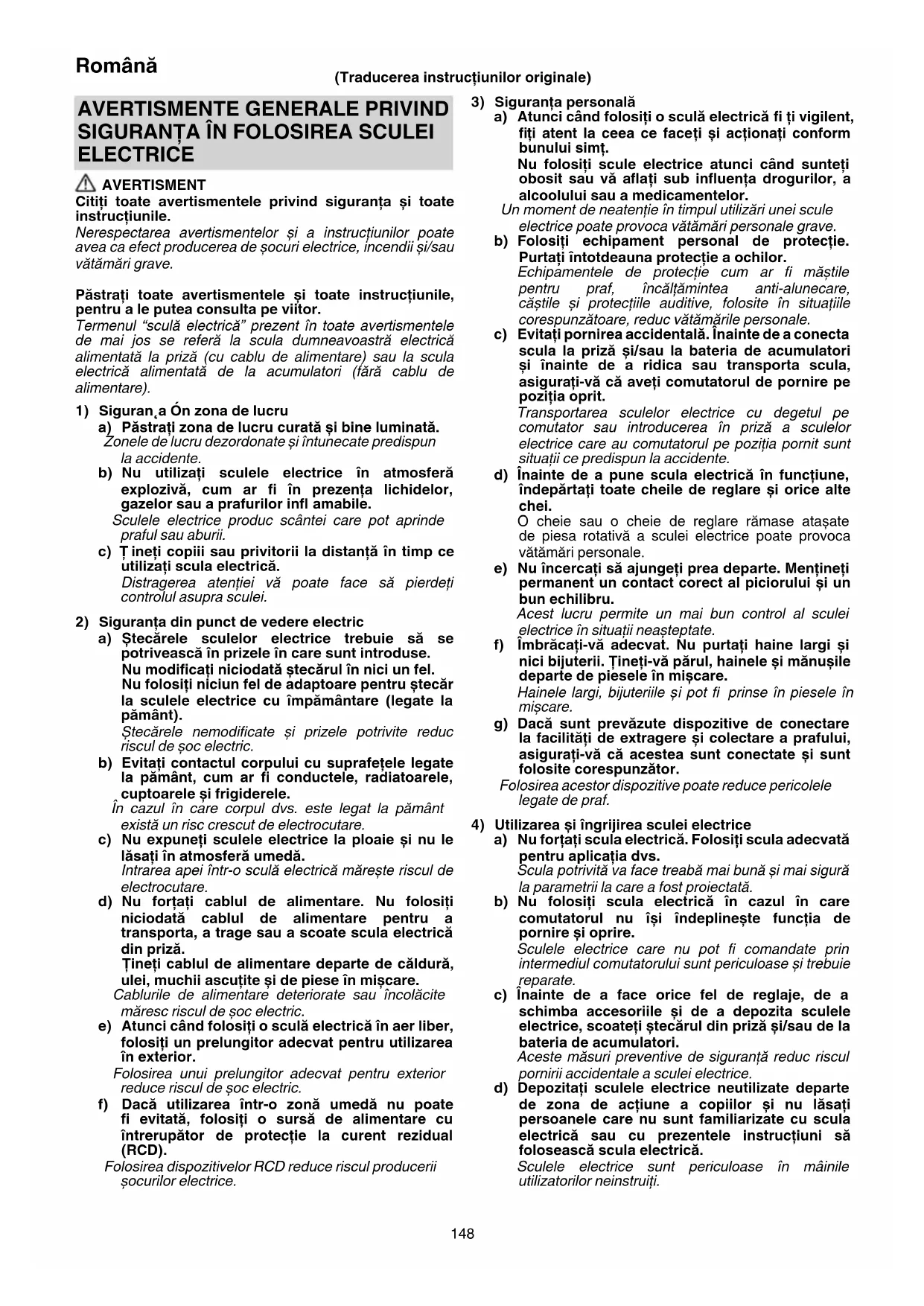4) Utilizarea și îngrijirea sculei electrice