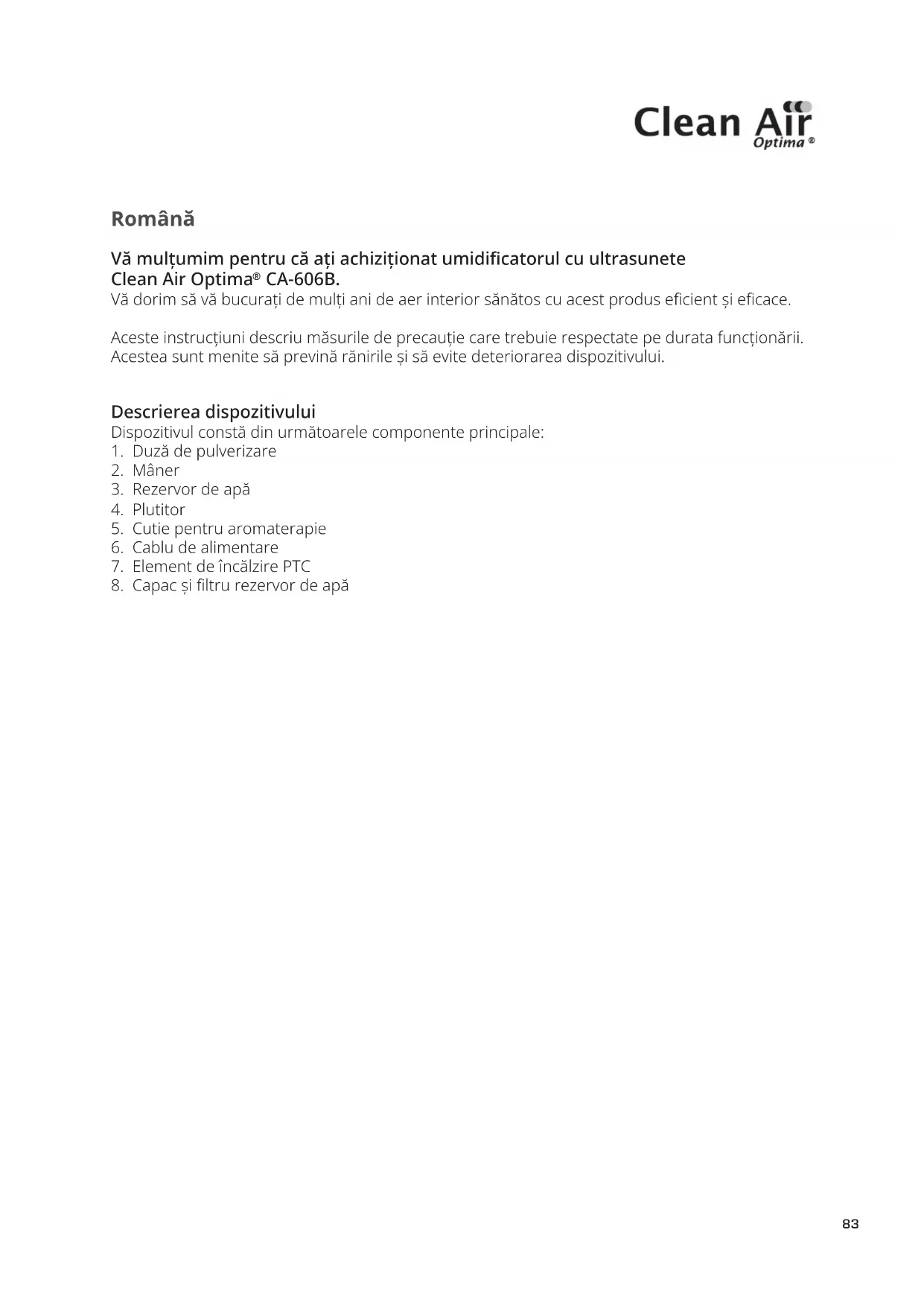 MANUAL DE UTILIZARE CA-606B Clean Air Optima