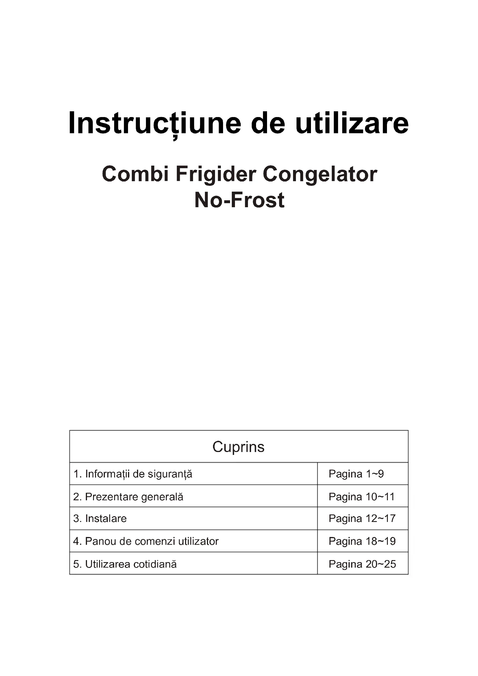 În interesul siguranței dumneavoastră și pentru a asigura funcționarea corectă, înainte de instalare și utilizare inițială, vă rugăm să citiți cu atenție acest manual de utilizare, inclusiv sfaturile și avertismentele sale. Pentru a evita greșelile și accidentele inutile, este important să vă asigurați că toate persoanele care utilizează aparatul sunt bine familiarizate cu funcțio- narea și caracteristicile de siguranță ale acestuia. Păstrați aceste instrucțiuni și, dacă sunt mutate sau vândute, asigurați-vă că acestea rămân cu aparatul, astfel încât toată lumea care îl folosește pe durata de viață a acestuia să fie informată în mod corespunzător cu privire la utilizarea și siguranța aparatului. Pentru a proteja viața și proprietatea, păstrați la înde- mână măsurile de precauție enumerate în instrucțiunile de utilizare, deoarece producătorul nu este responsabil pentru daunele cauzate de omisiune. Siguranța copiilor și a persoanelor vulnerabile Acest aparat poate fi utilizat de către copiii cu vârste de minim 8 ani și de către persoanele cu capacități fizice, senzoriale sau mentale reduse sau cu lipsă de experiență sau cunoștințe cu condiția să fie supra- vegheate sau instruite corespunzător privind modul de utilizare în condiții de siguranță și să înțeleagă pericolele implicate. Încărcarea și descărcarea acestui aparat poate fi efectuată de copii cu vârste cuprinse între 3 și 8 ani. Copiii trebuie supravegheați pentru a vă asigura că nu se joacă cu aparatul.Informații de siguranță