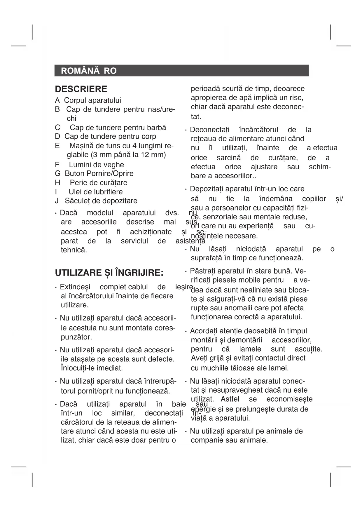 - Pentruofuncționarecorectăaapa- ratuluidetuns.Ungeți-lcuuleide motorușordupăecareutilizare. CURĂȚAREA: