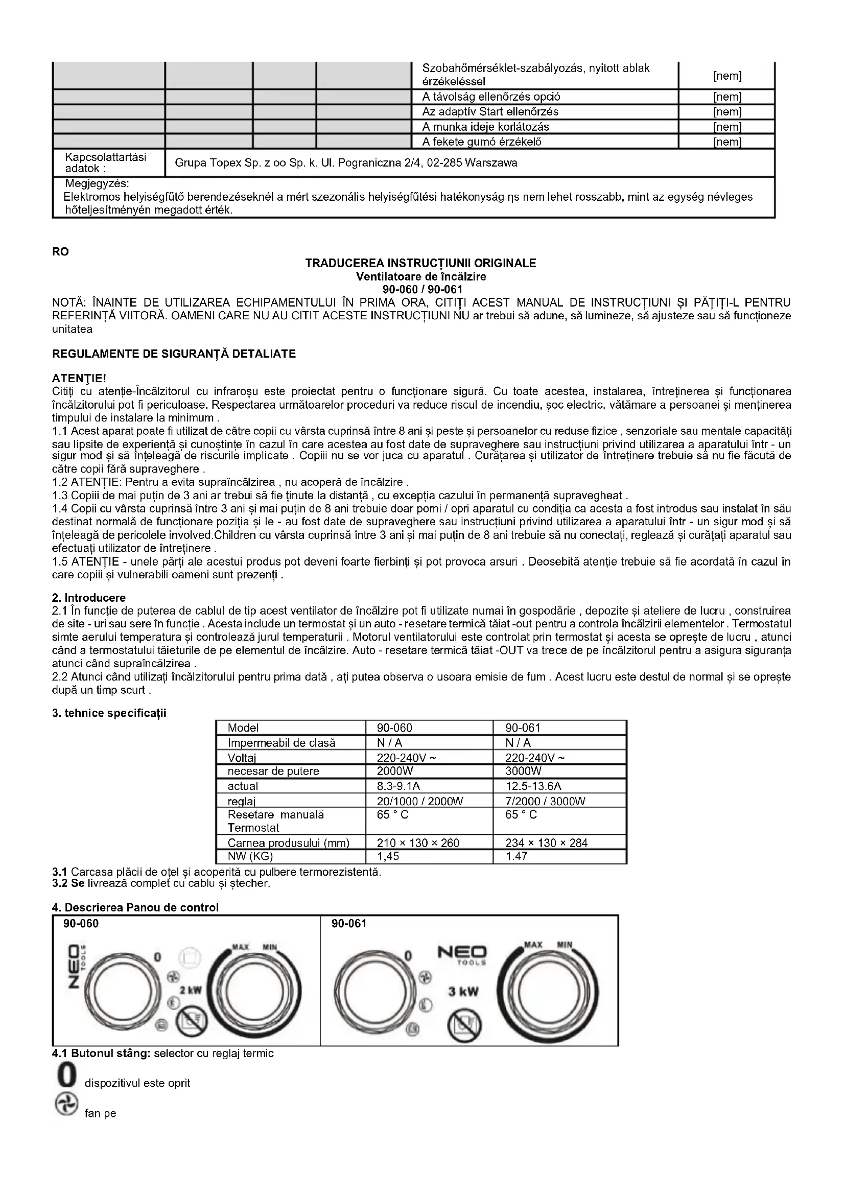 90-060 - Încălzire NEO - Manual de utilizare gratuit