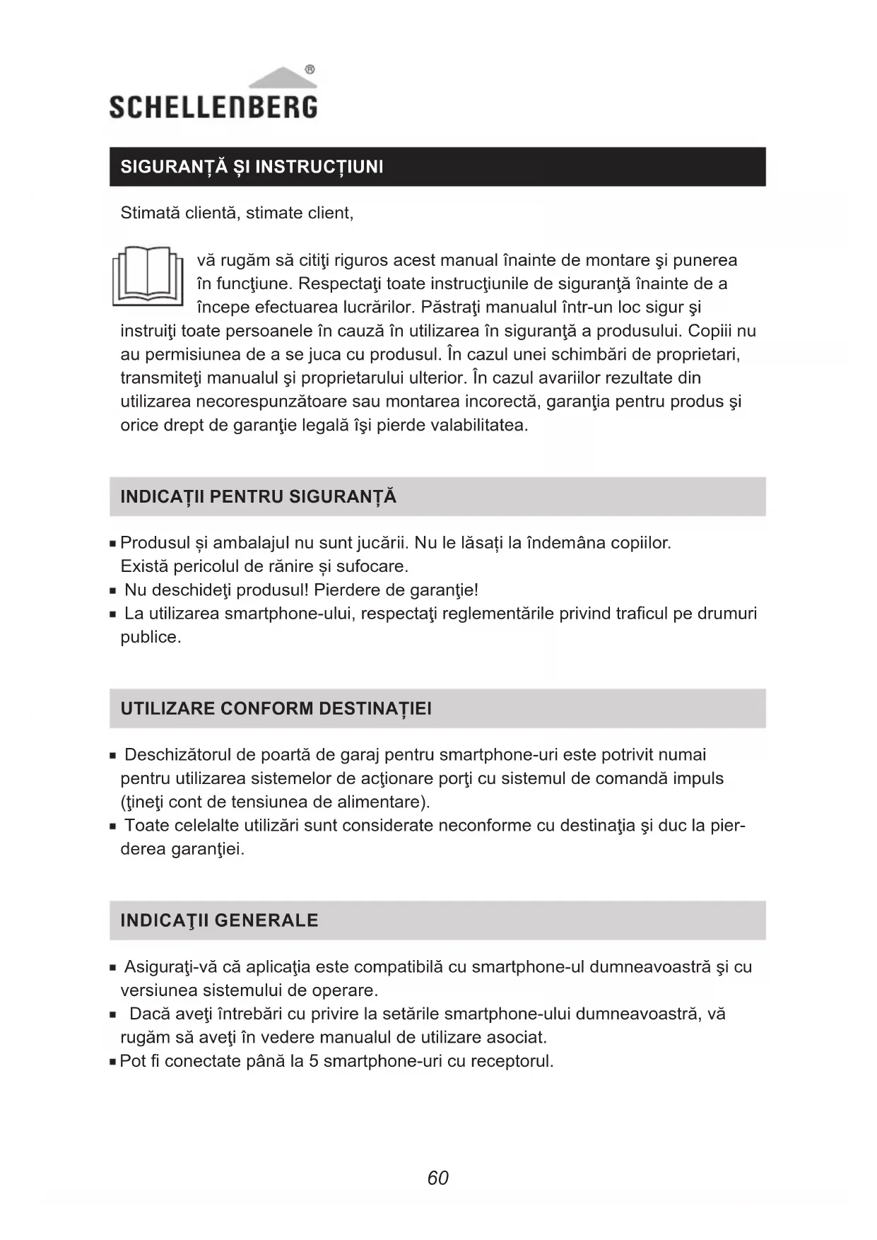 Deschizătoruldepoartădegarajpentrusmartphone-uriestepotrivitnumai pentruutilizareasistemelordeacţionareporţicusistemuldecomandăimpuls (ţineţicontdetensiuneadealimentare). Toatecelelalteutilizărisuntconsiderateneconformecudestinaţiaşiduclapier- dereagaranţiei.