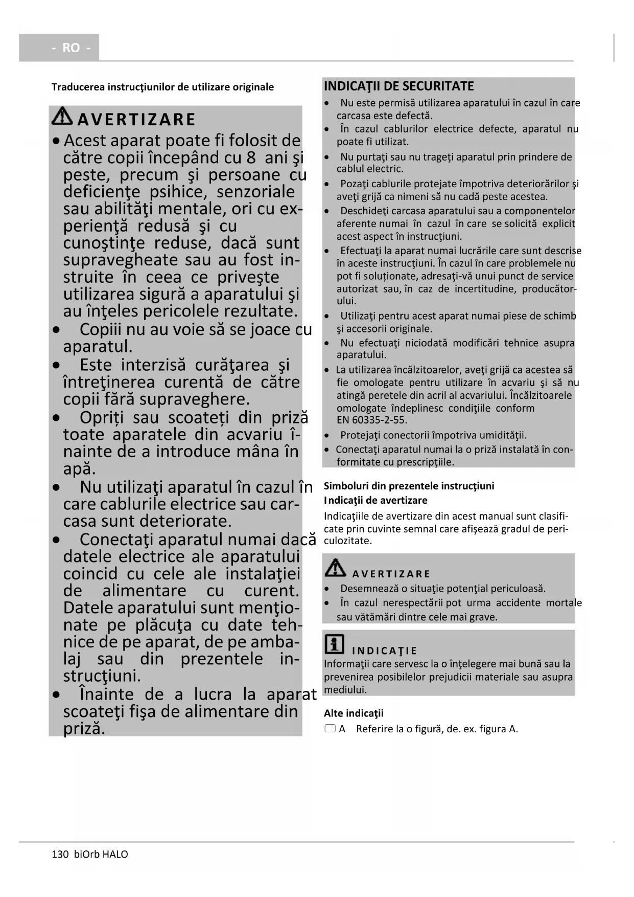 RO - Traducerea instrucţiunilor de utilizare originale AVERTIZARE