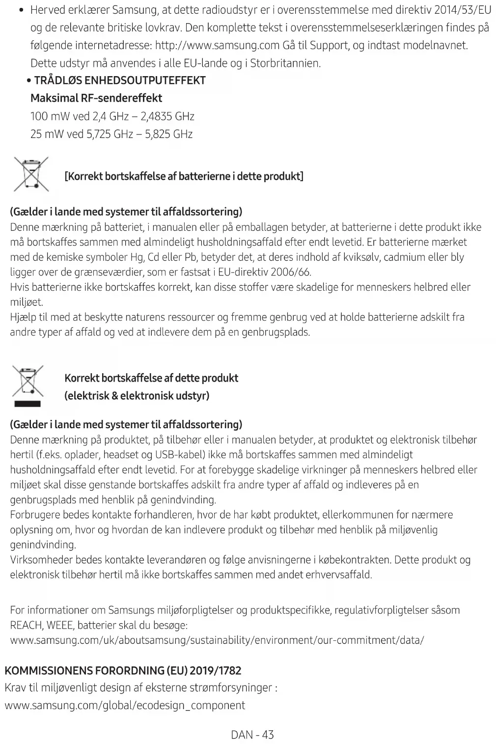 - Prin prezenta, Samsung declară că acest echipament radio respectă Directiva 2014/53/UE și cerințele legale relevante din Regatul Unit. Textul complet al declarației de conformitate este disponibil la următoarea adresă de internet: http://www.samsung.com. Accesați secțiunea Asistență și introduceți numele modelului. Acest echipament poate să e utilizat în toate țările din Uniunea Europeană și din Regatul Unit.ROM - 43
