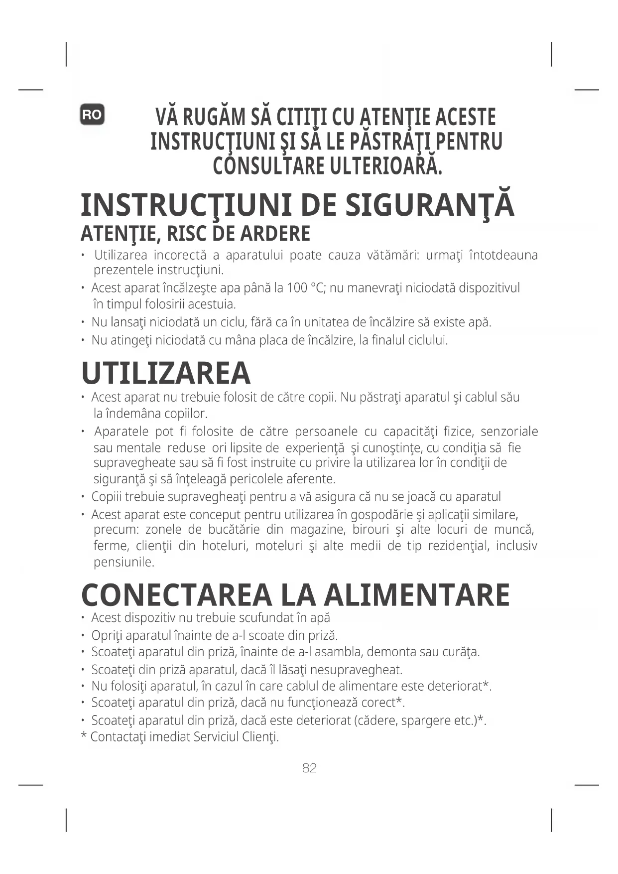 - Acest aparat încălzeşte apa până la 100 °C; nu manevraţi niciodată dispozitivul în timpul folosirii acestuia.