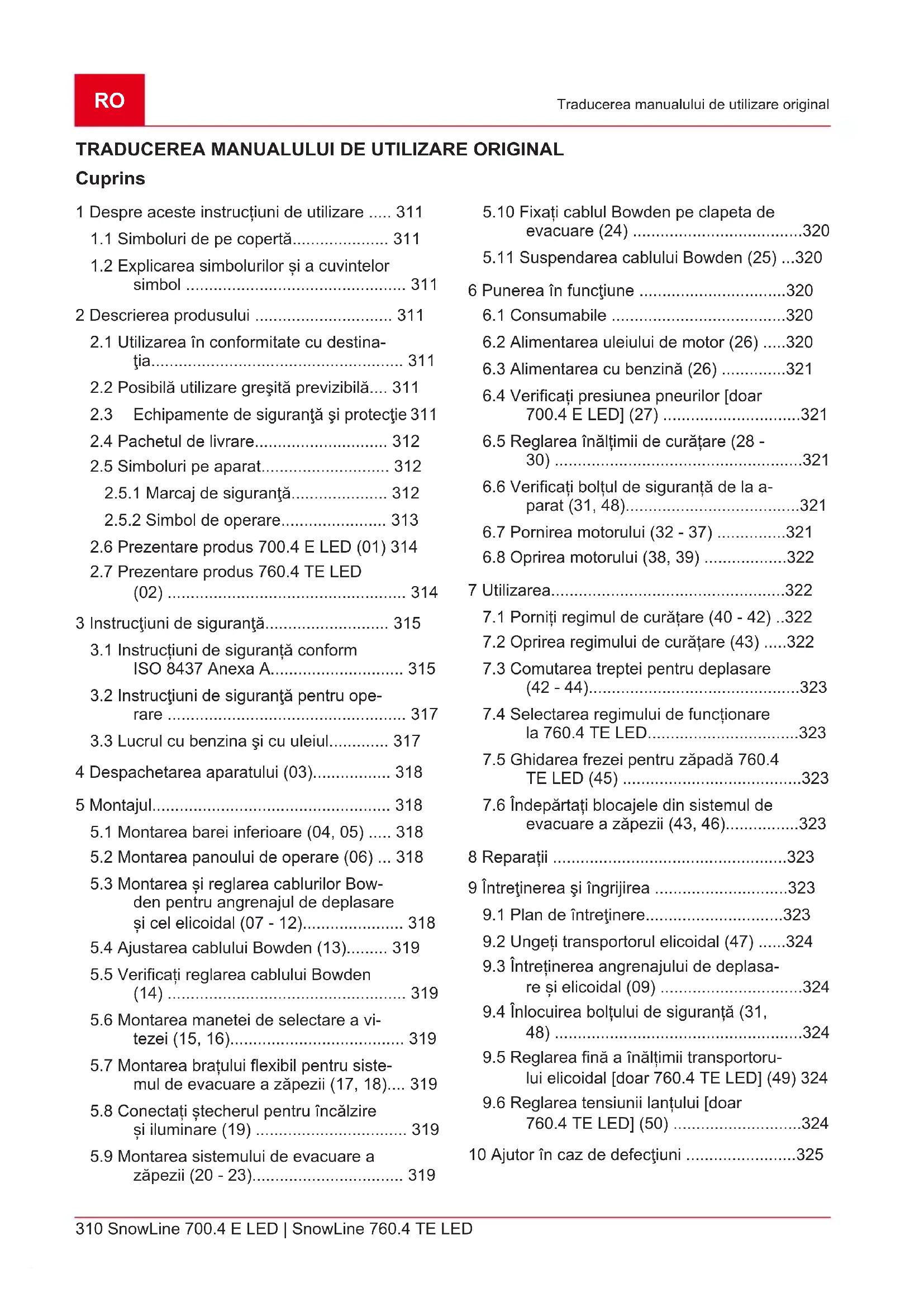 evacuare a zăpezii (43, 46)................323 8 Reparații ...................................................323 9 Întreţinerea şi îngrijirea .............................323