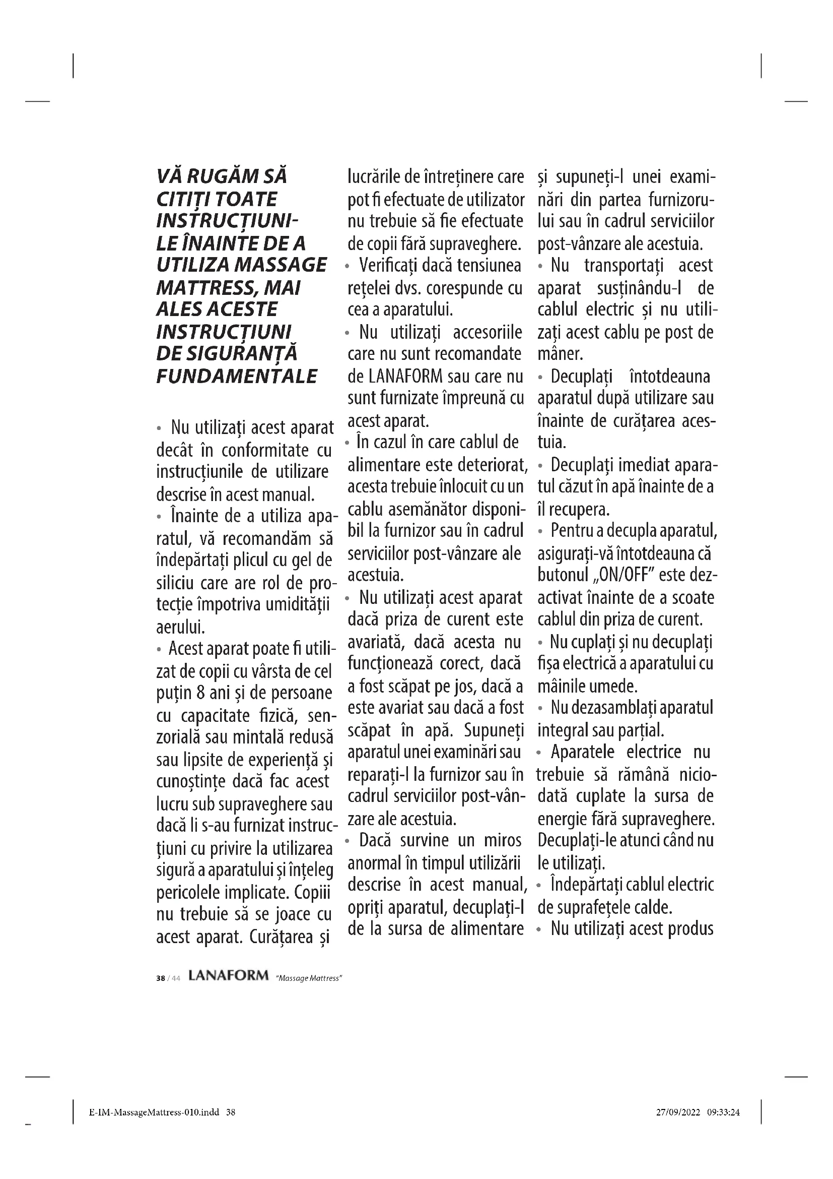 MANUAL DE UTILIZARE Massage Mattress LANAFORM