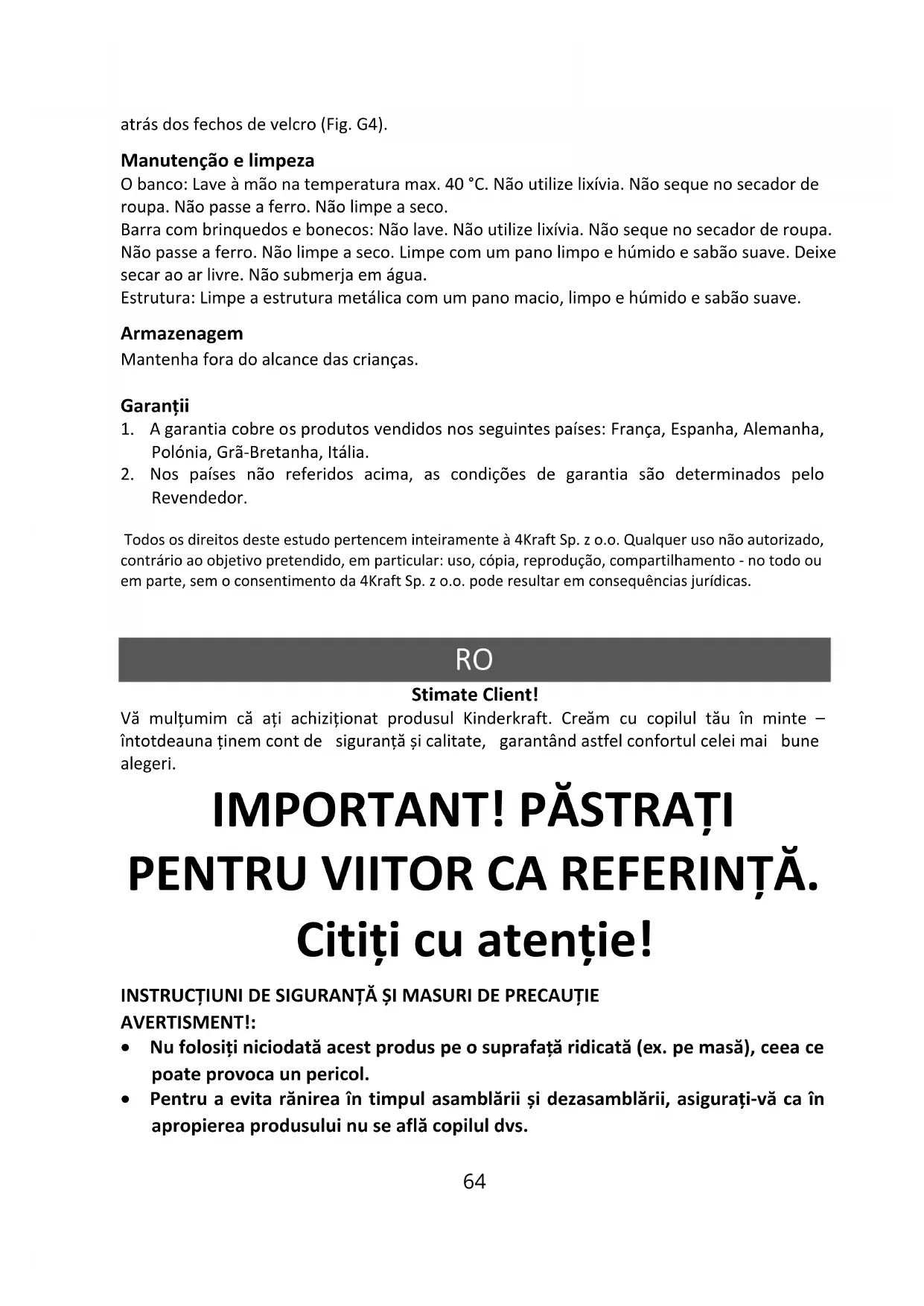 - NUيfolosițiيpătuțulيînيcazulيînيcareيlipsescيpiese,يacesteaيsuntيdeteriorateيsauيrupte.ي Dacăيesteيnecesar,يvăيrugămيsăيcontactațiي4KraftيSp.يzيo.o.يpentruيpieseيdeيschimbيșiي materialeيdeيinstruire.يESTEيINTERZISĂي folosite piese neautorizate.