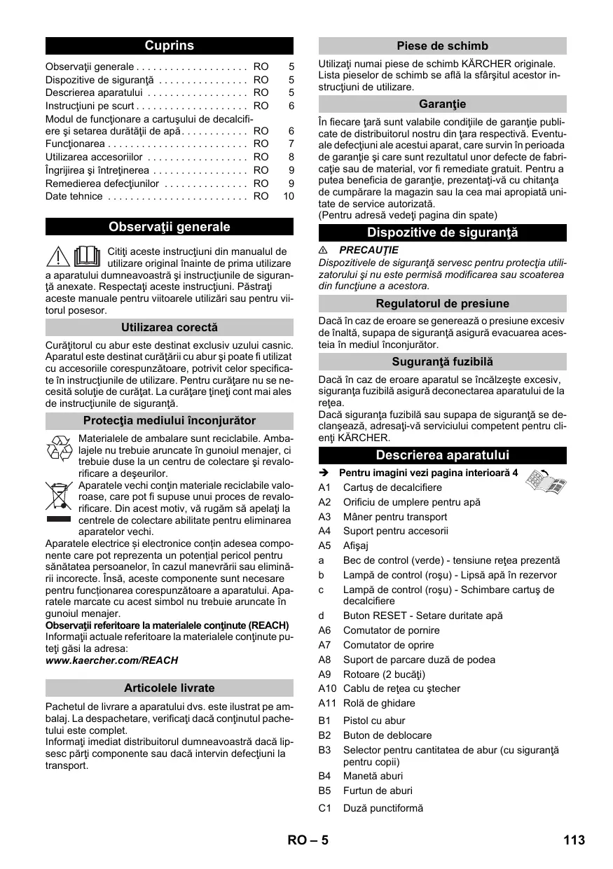 Dacă siguranta fuzibila sau supapa de siguranta se declansează, adresati-va serviciului competent pentru clienti KÁRCHER.