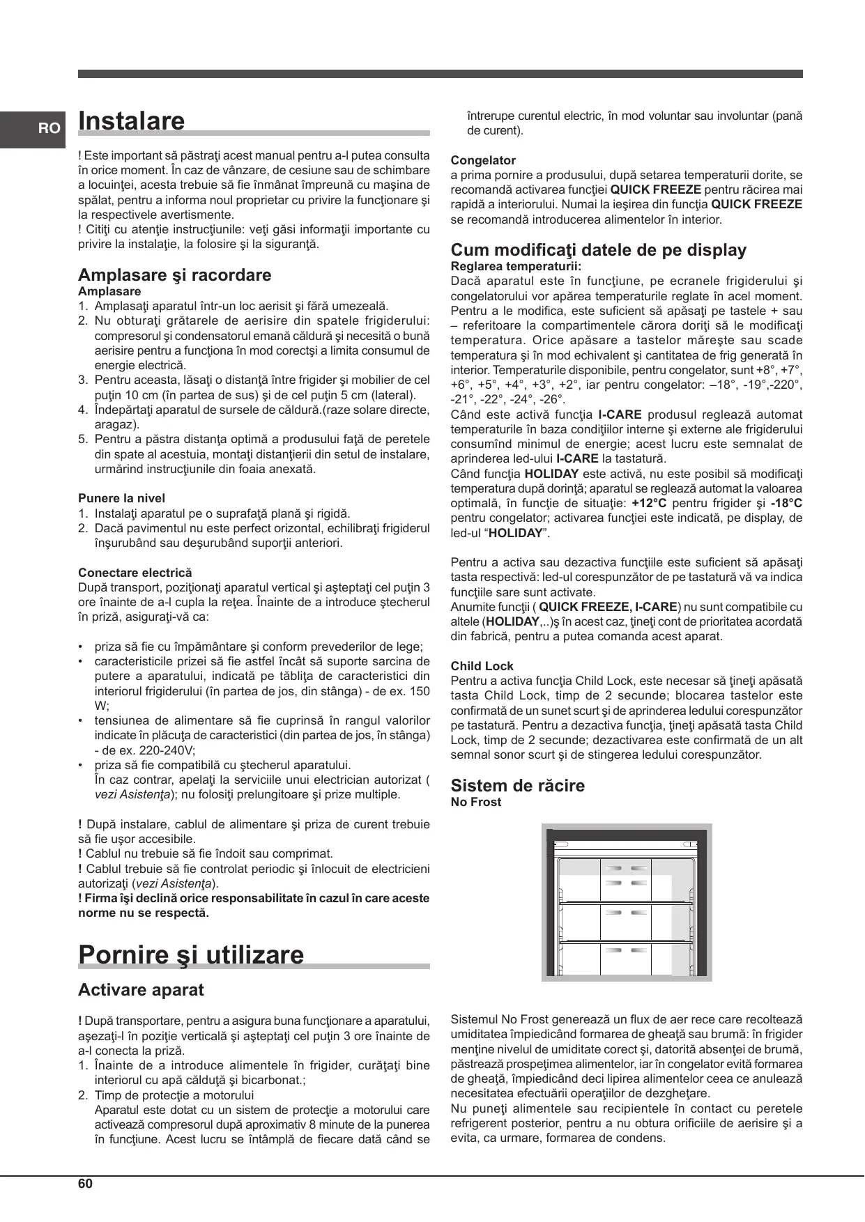 - Dezgheṭa ἀρaratul dacă observati cà s-a format gheata (vezi Intretinere); stratul de gheata gros impiedica răcirea alimentelorși mărește consumul de energia.
