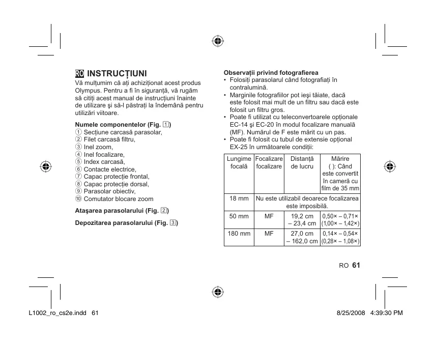 MANUAL DE UTILIZARE ZUIKO DIGITAL ED 18-180MM F3.5-6.3 OLYMPUS