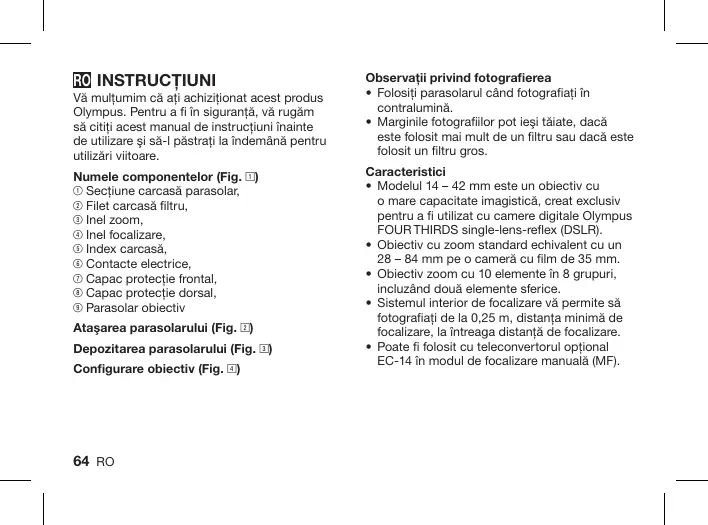 MANUAL DE UTILIZARE ZUIKO DIGITAL ED 14 OLYMPUS