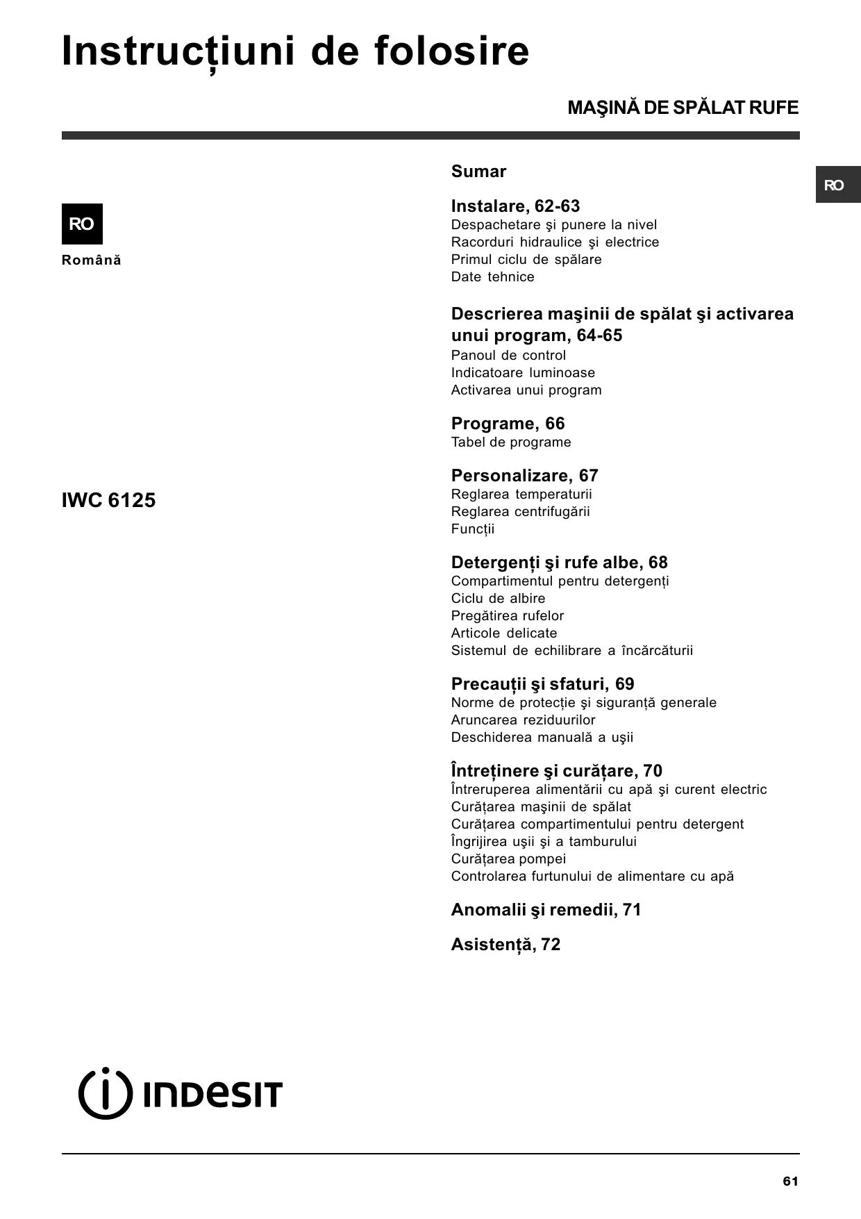 MANUAL DE UTILIZARE IWC 6125 INDESIT