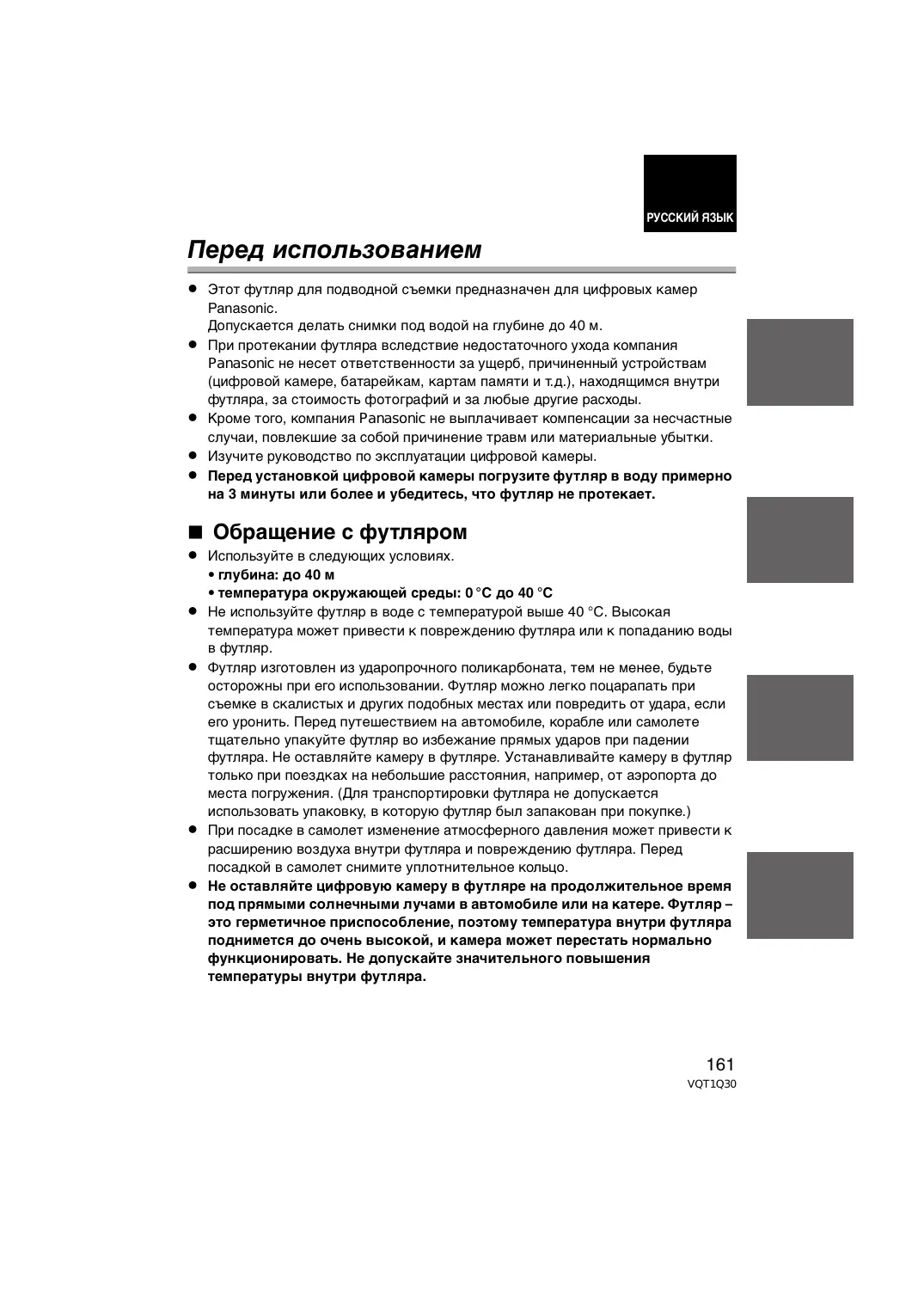 VQT1Q30 РУССКИЙ ЯЗЫК Перед использованием ≥ Этот футляр для подводной съемки предназначен для цифровых камер